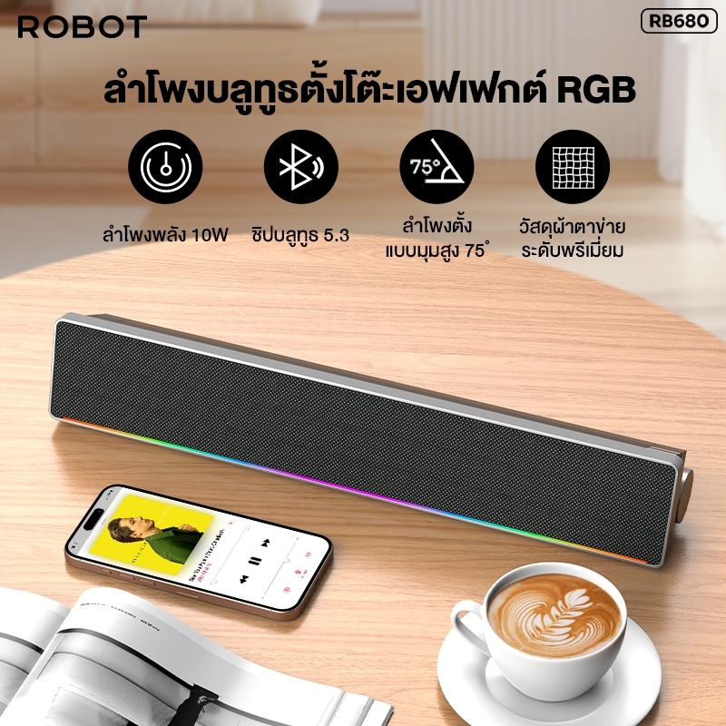 [ประกัน 1 ปี] ROBOT ลำโพงซาวด์บาร์ รุ่น RB680/RB590/RB510 ลำโพงบลูทูธ มีไฟRGB 10 วัตต์ Speaker Bluetooth 5.3