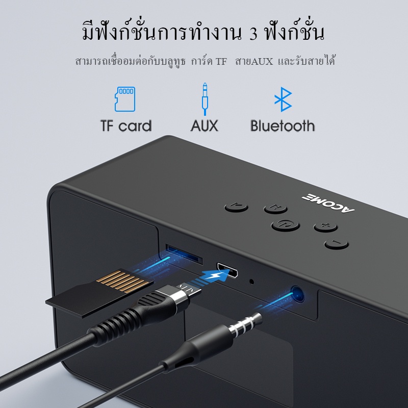 ACOME ลำโพงบลูทูธสเตอริโอ A16 แถมสายชาร์จทุกตะกร้า พร้อมซับบัฟเฟอร์ Bluetooth 5.2 ลำโพงเบสหนัก รองรับ AUX/SDCard/TWS