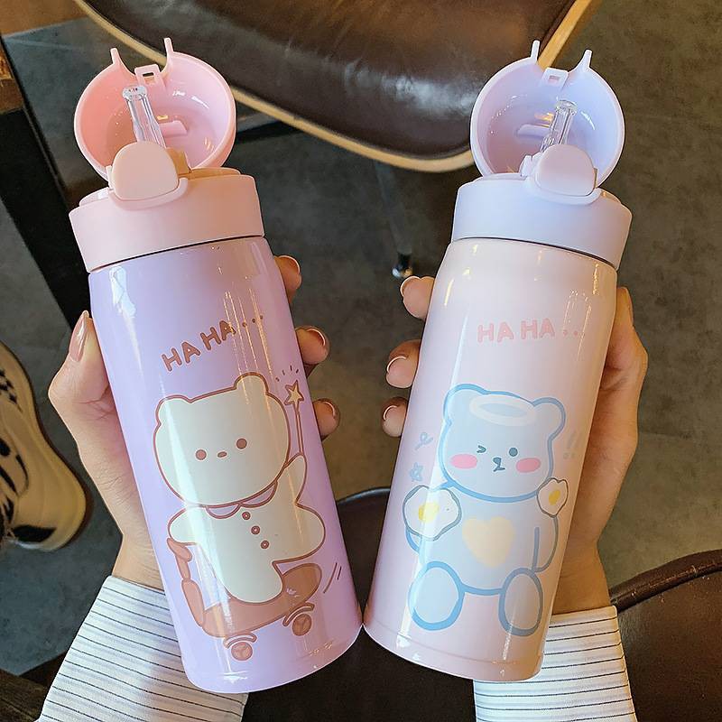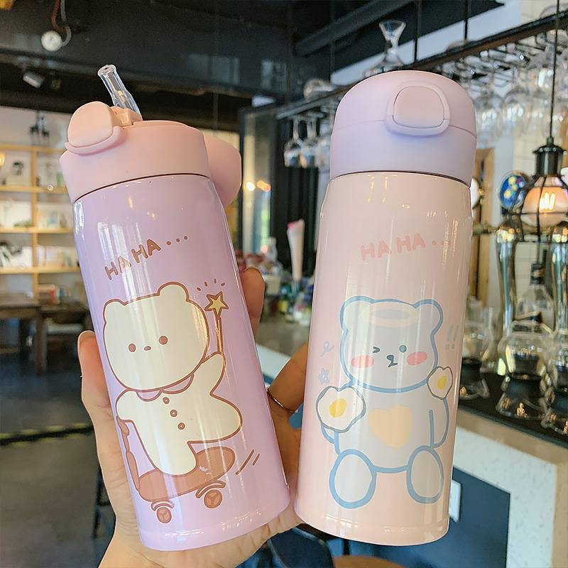(ใส่โค้ด NUTTIE50 ลด 20% ) กระบอกน้ำเก็บอุณหภูมิ แบบหลอดดูด กระติกน้ำ กระบอกน้ำ NEW Bear