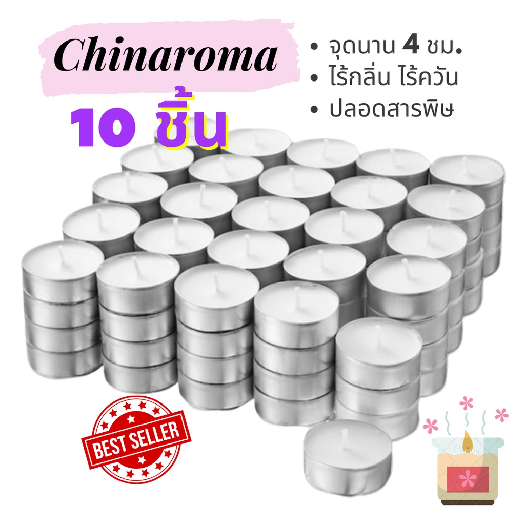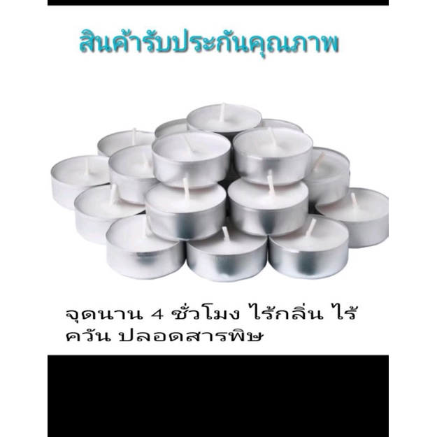 เทียนถ้วย ไร้กลิ่น ไร้คว้น 1 แพ็ค มี 10 ชิ้น จุดนาน 4 ชั่วโมง เนื้อเทียนเต็มถ้วย จุดหมดไม่ตกค้าง