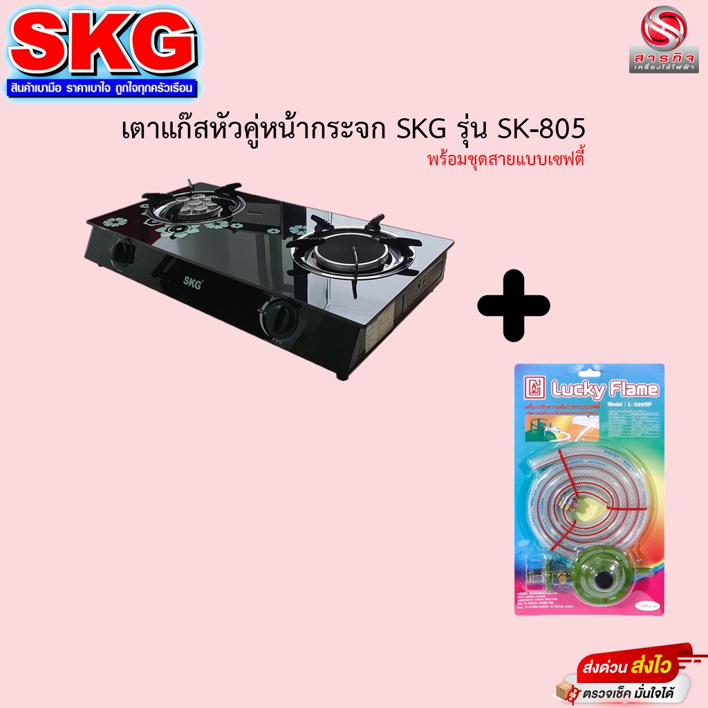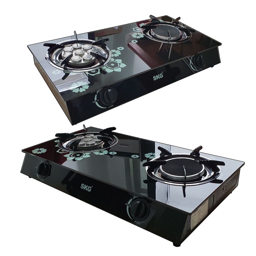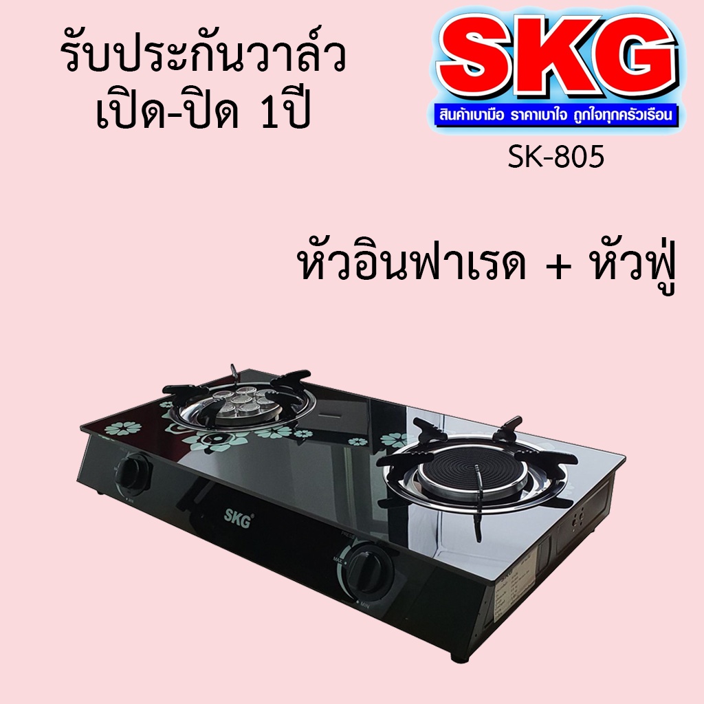 เตาแก๊สหน้ากระจก SKG หัวอินฟาเรด+หัวฟู่ รุ่น SK-805 รับประกันวาล์วเปิด-ปิด 1ปี