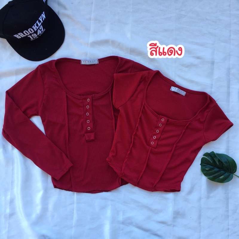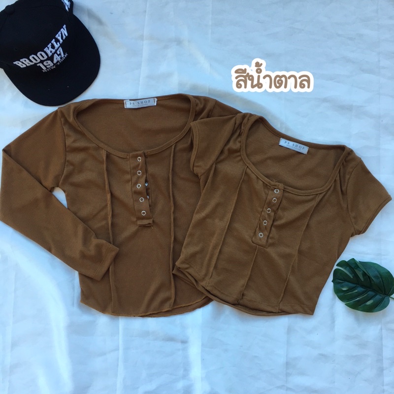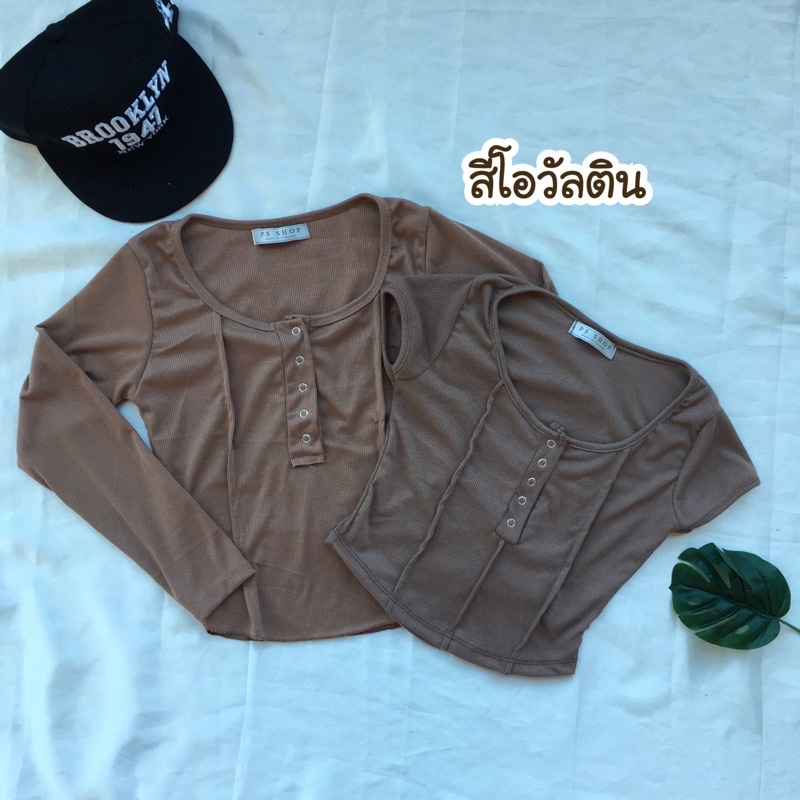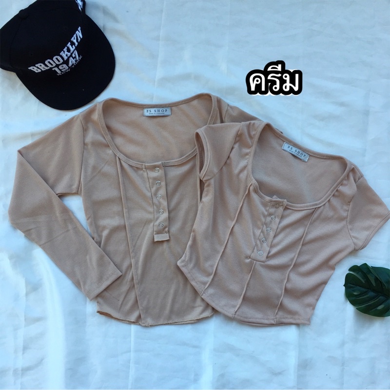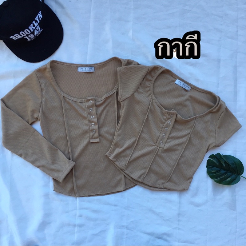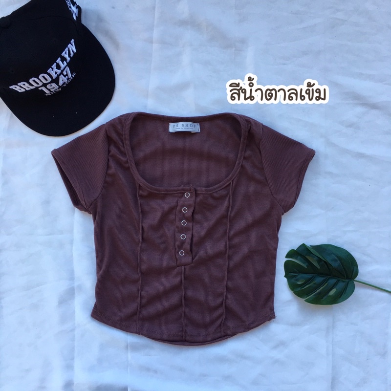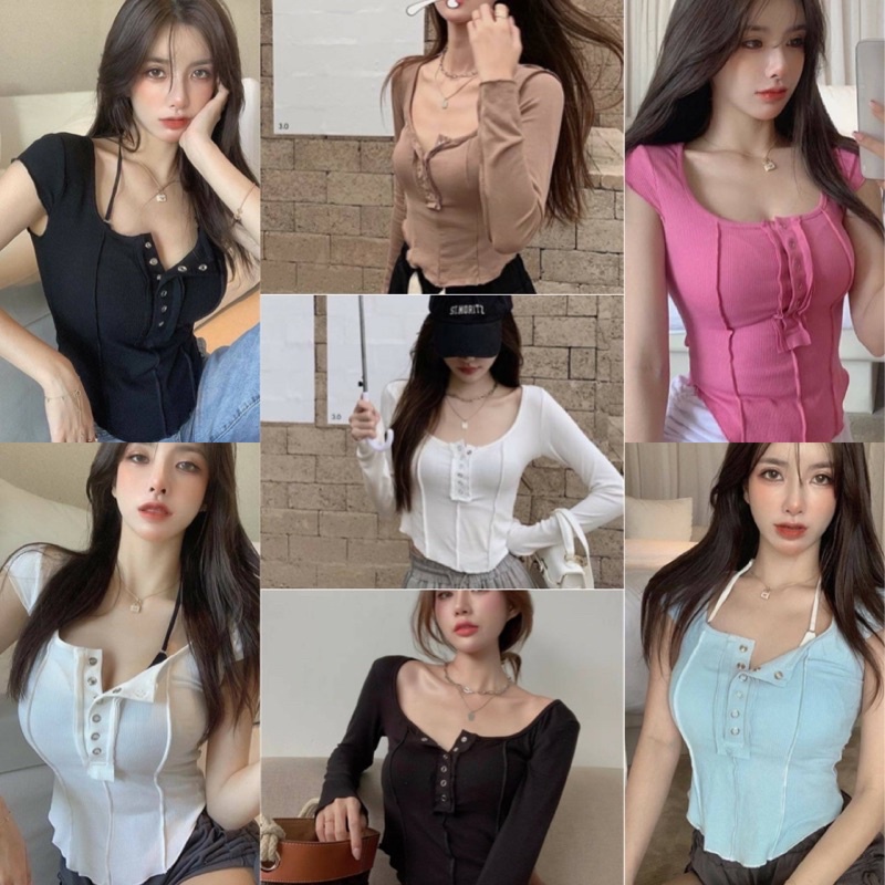 ❤️ส่งจากไทย❤️เสื้อครอปสายฝอ รุ่นกระดุมแป๊ะ งานแฟชั่น 🌈งานจริงรูปสุดท้าย