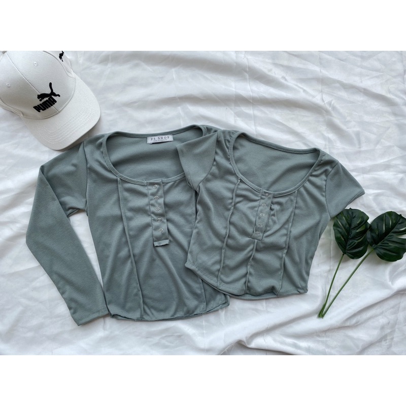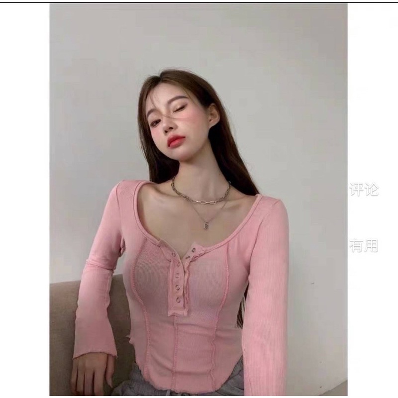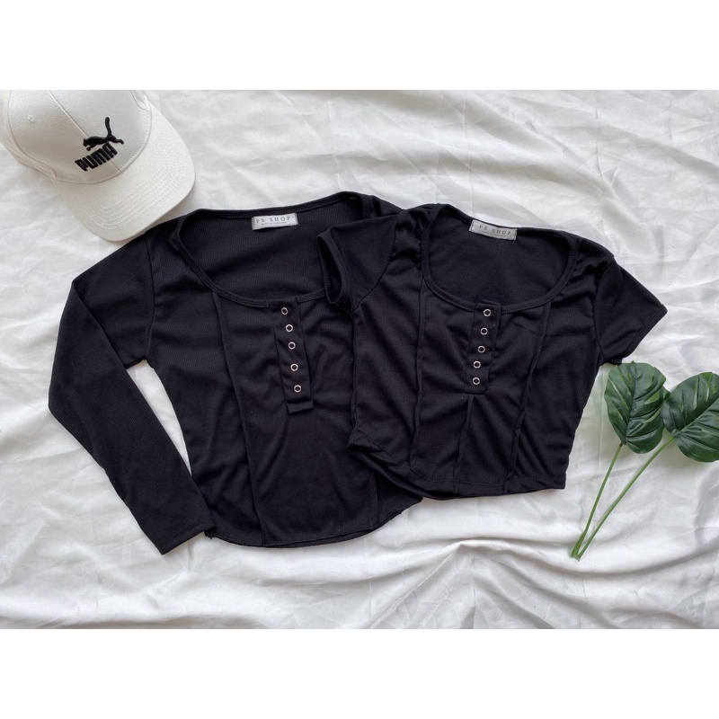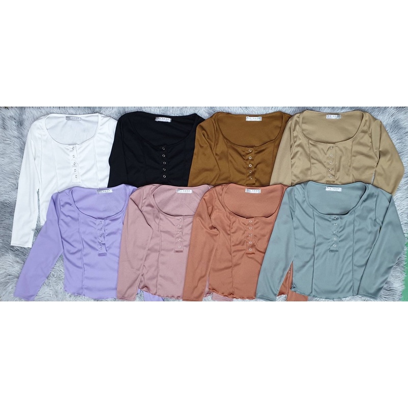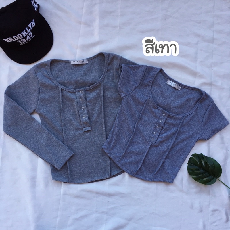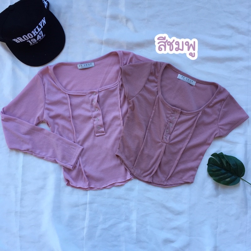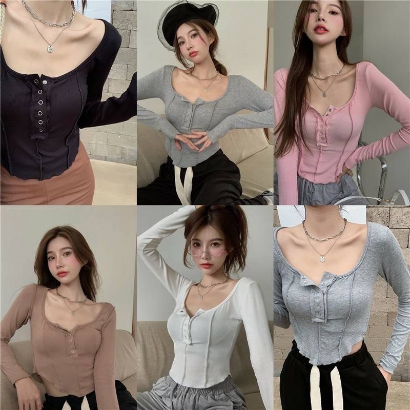 ❤️ส่งจากไทย❤️เสื้อครอปสายฝอ รุ่นกระดุมแป๊ะ งานแฟชั่น 🌈งานจริงรูปสุดท้าย