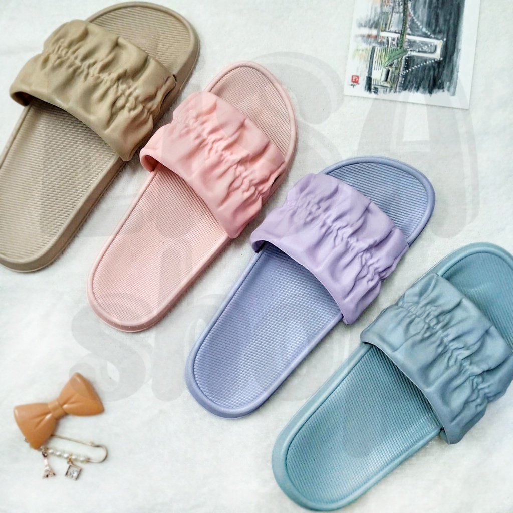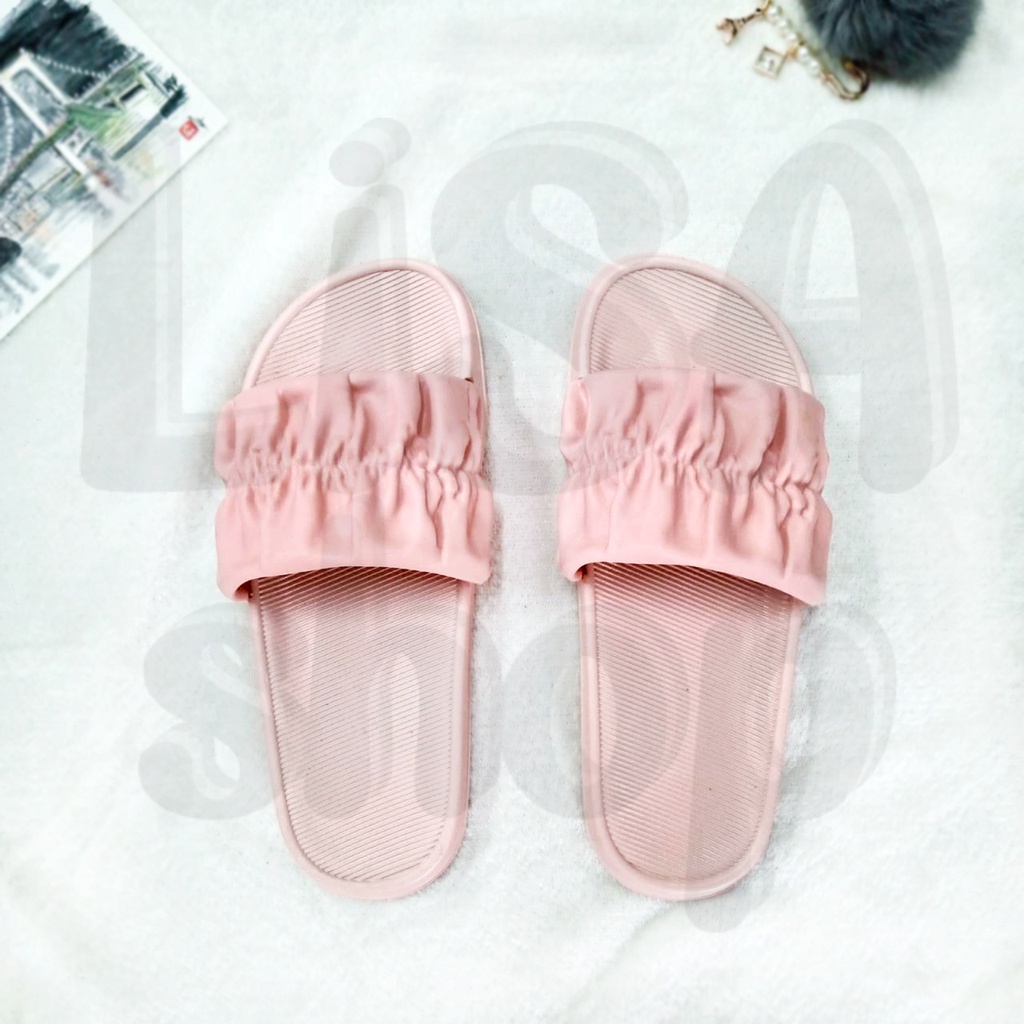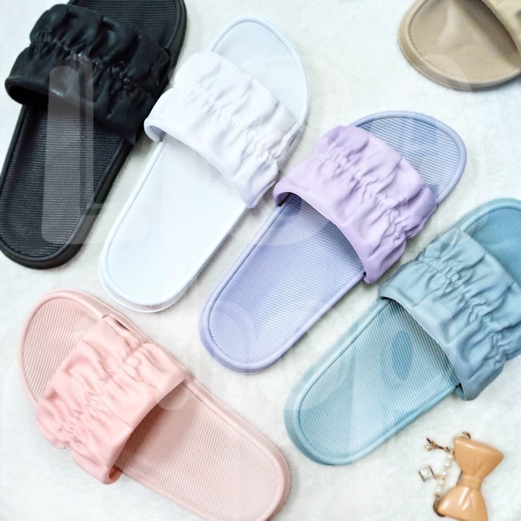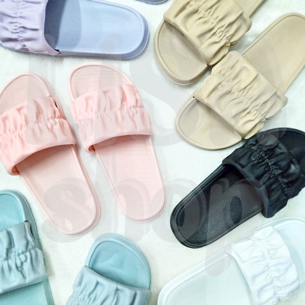 รองเท้าแตะ แบบสวม รองเท้าแฟชั่นผู้หญิง แต่งลายจีบย่น สีสันสดใส วัสดุยางอย่างดี T70