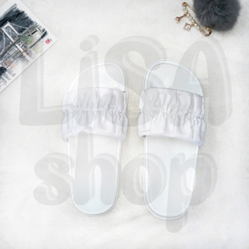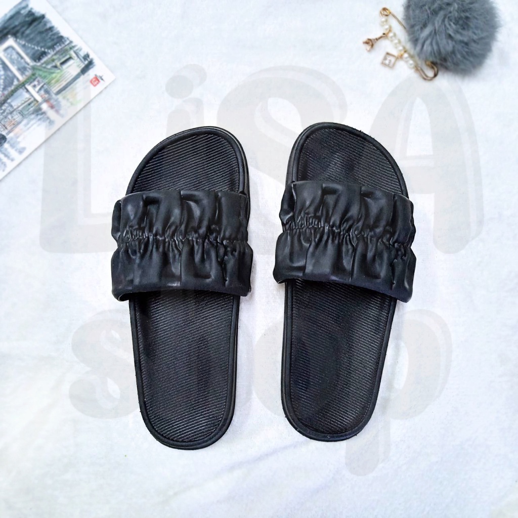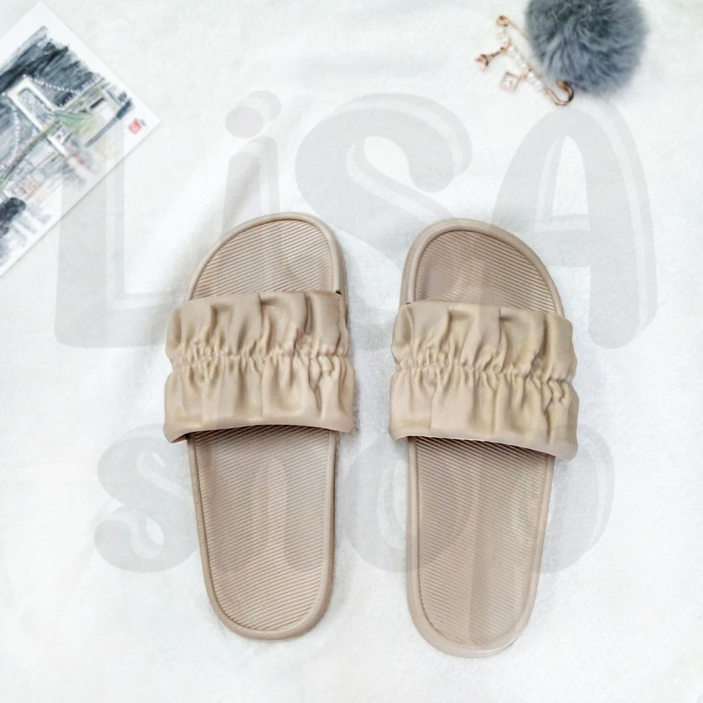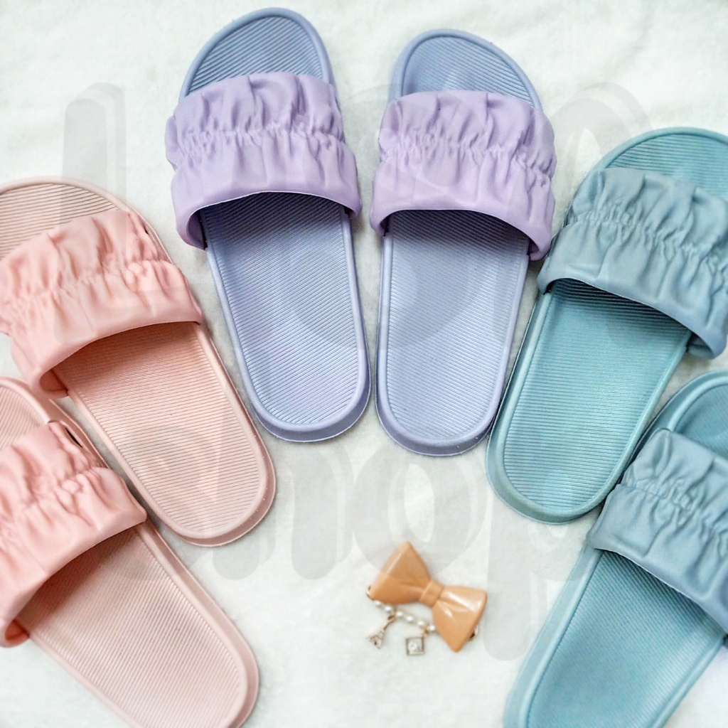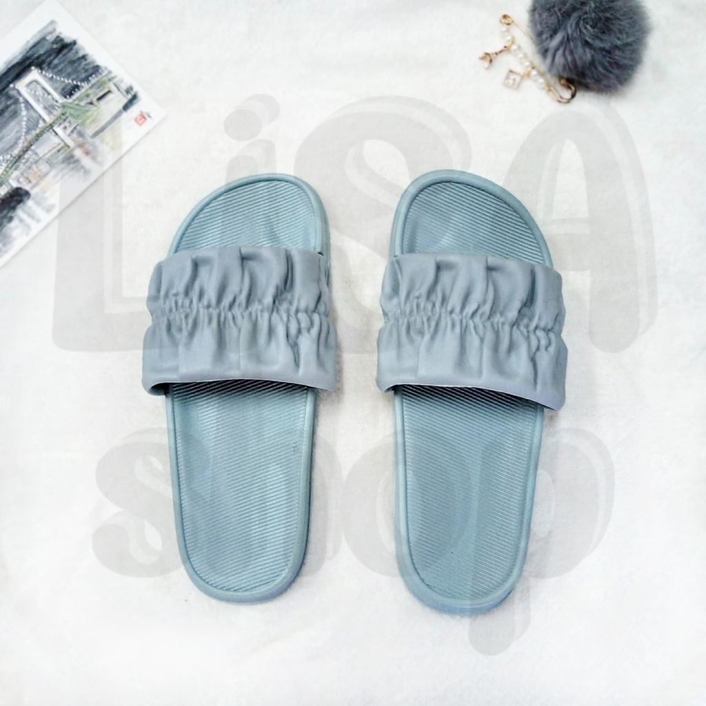 รองเท้าแตะ แบบสวม รองเท้าแฟชั่นผู้หญิง แต่งลายจีบย่น สีสันสดใส วัสดุยางอย่างดี T70