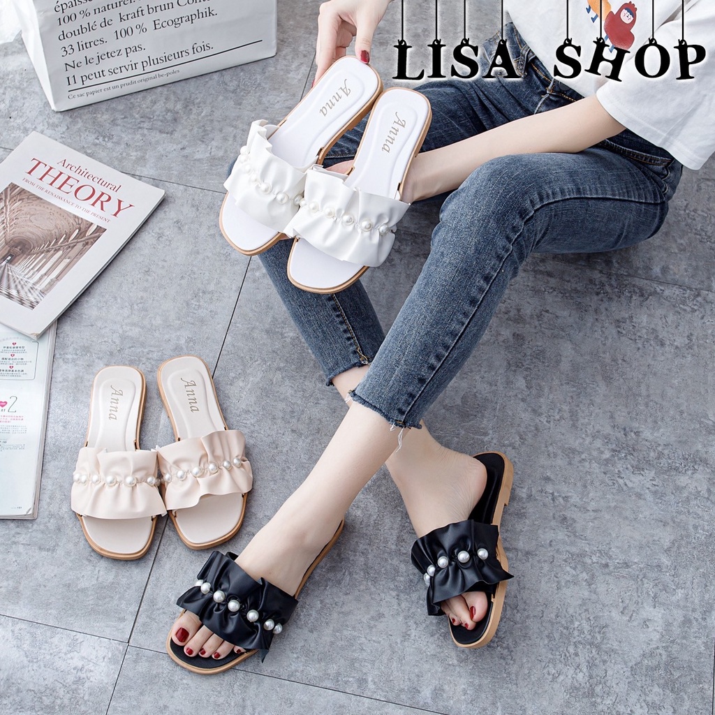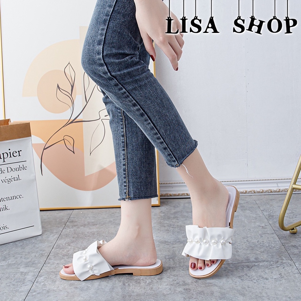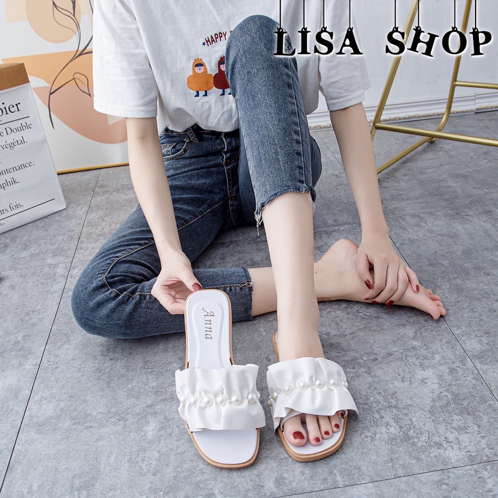 รองเท้าแตะสำหรับผู้หญิง แต่งจีบประดับไข่มุขด้านหน้า รองเท้าแตะแฟชั่น T97