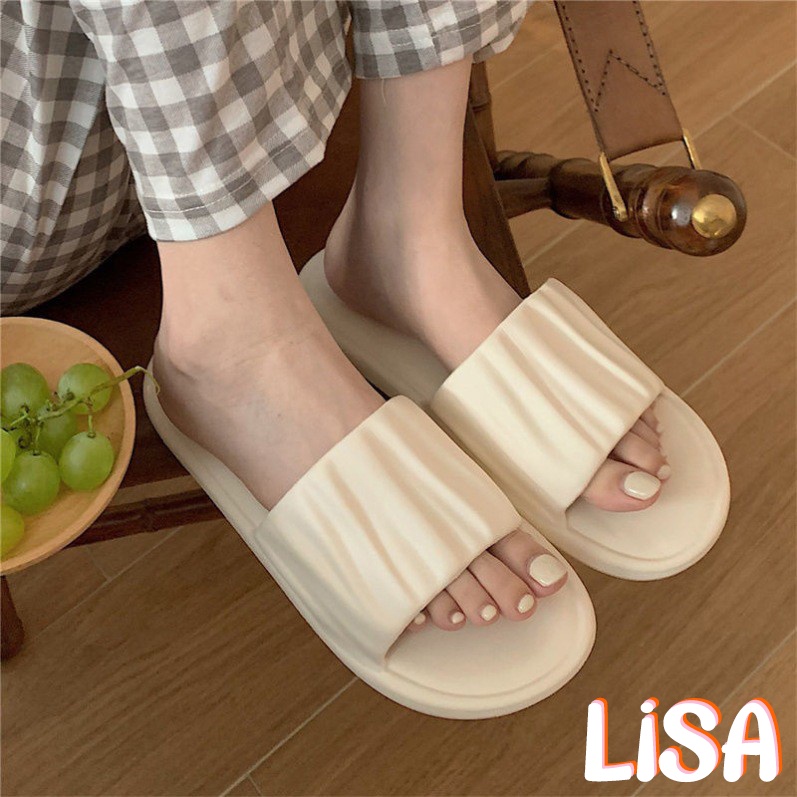 รองเท้าแตะแฟชั่น ดีไซน์แต่งจีบ มี 3 สี ยางคุณภาพดี ทนทาน ขนาดไซซ์แบบคร่อม T53