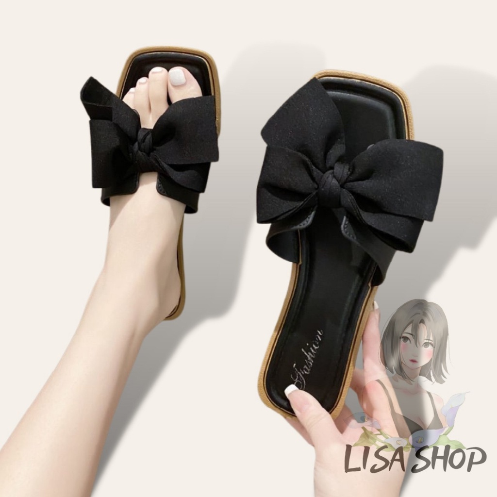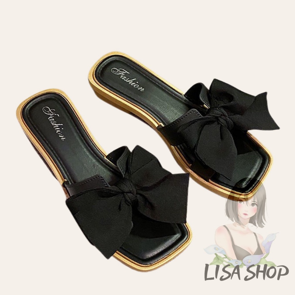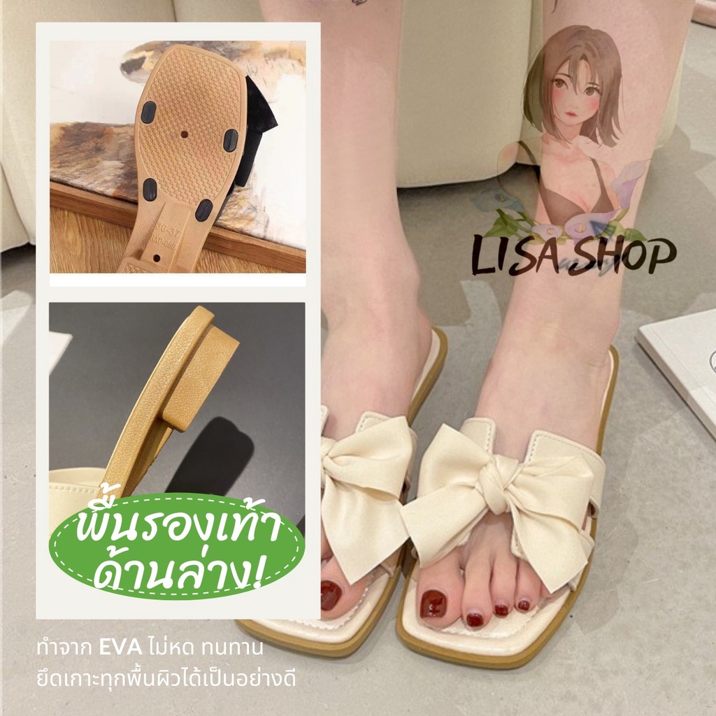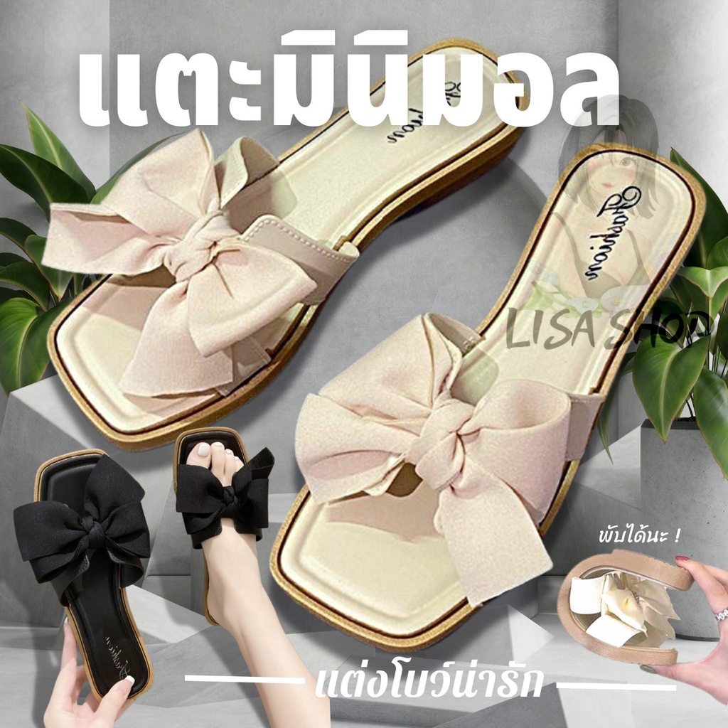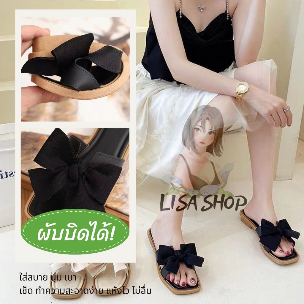 รองเท้าแฟชั่น ทรงเรียบหรู แต่งโบว์น่ารัก พื้นกันลื่น สินค้าพร้อมส่งจากไทย T109