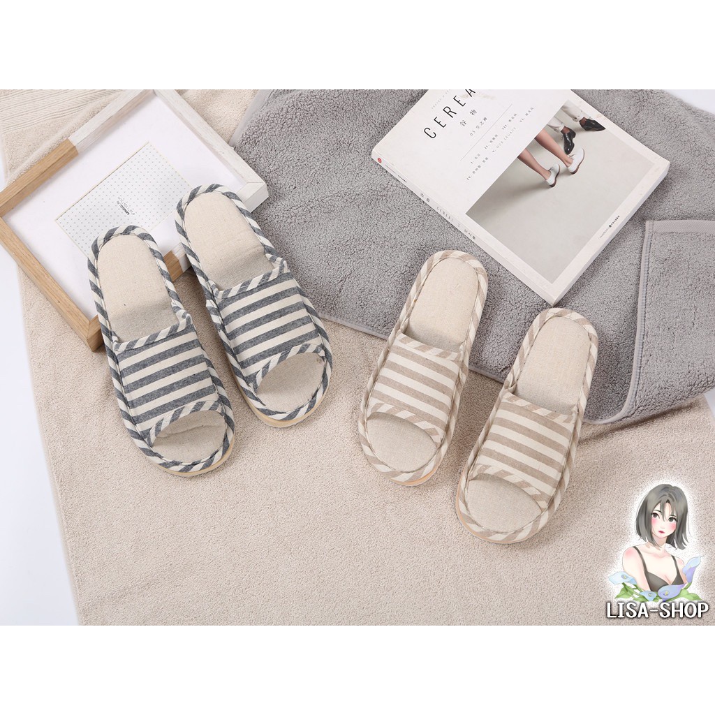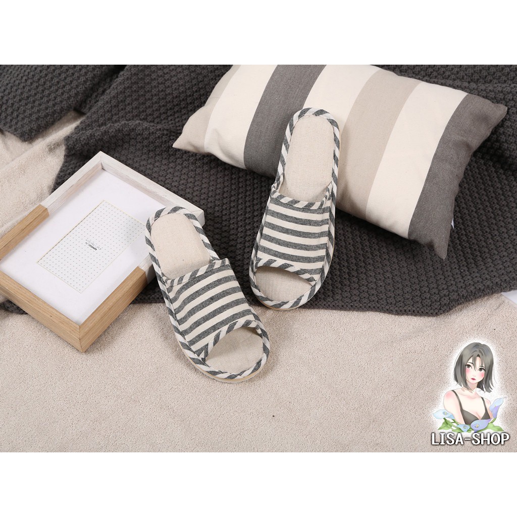 รองเท้าแตะ รองเท้าใส่ในบ้าน ถนอมฝ่าเท้า ลายขีด พื้นมีกันลื่น สไตล์ญี่ปุ่น T01