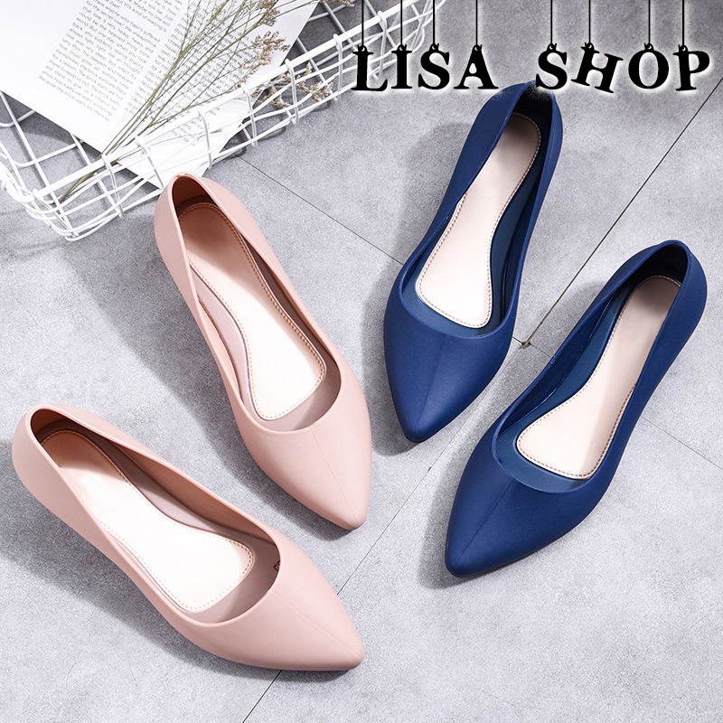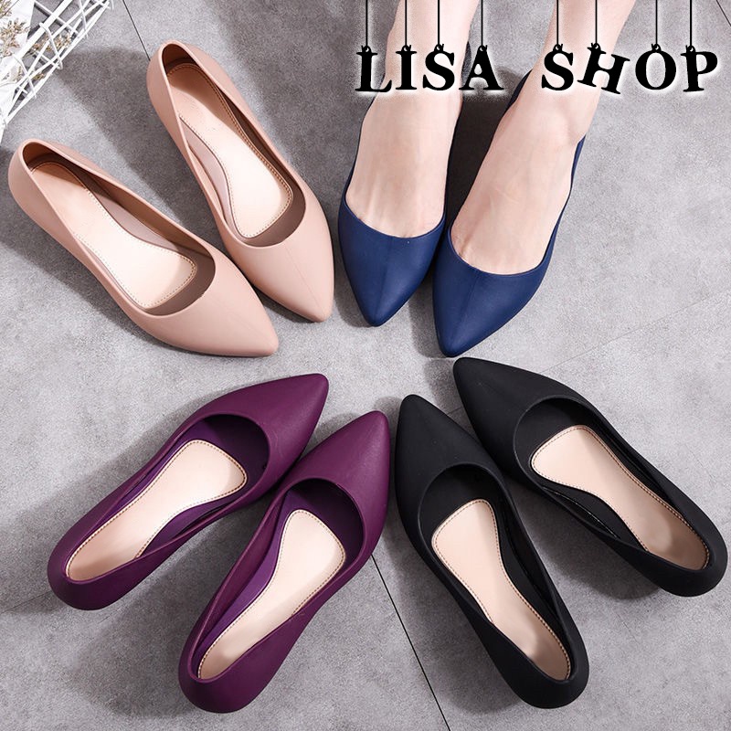 🌷รองเท้าแฟชั่น คัชชูหัวแหลม รองเท้ายางนิ่ม 👡 ส้นเตารีด สีพื้น พื้นนิ่ม ใส่สบาย ใส่ทำงาน ใส่เที่ยว T12🌟