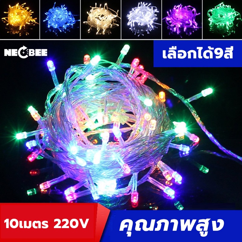 ไฟคริสต์มาส ไฟกระพริบ led ไฟนิ่ง ไฟหยดน้ำ ยาว 10เมตร 100 ดวง ไฟประดับตกแต่ง ปรับได้ 8โหมด มีให้เลือก 9 สี ราคาพิเศษ