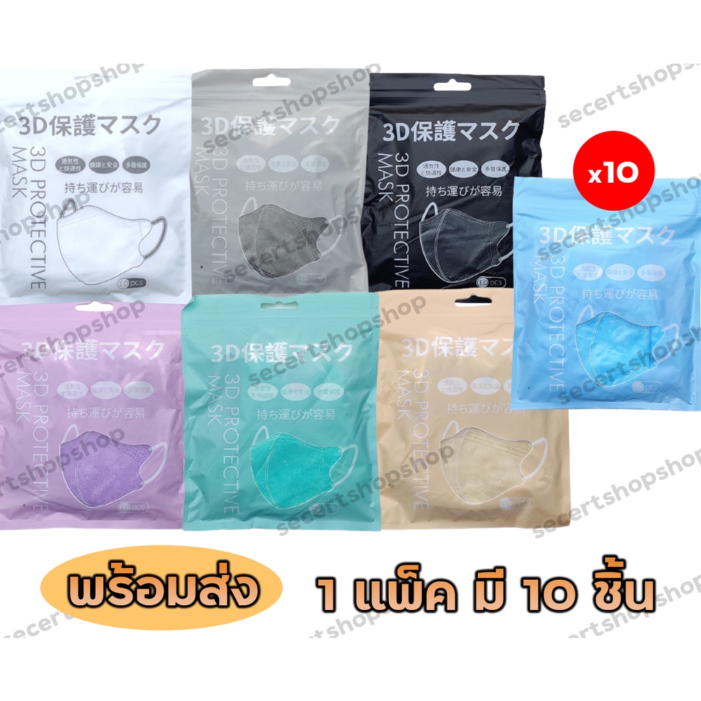 (ออกใบกำกับภาษีได้) {3แพ็ค ลด10บาท] 1 แพ็ค 10 ชิ้น หน้ากากอนามัย 3ชั้น 3D หน้ากากทรงเกาหลี PM2.5 mask แมสเกาหลี แมส