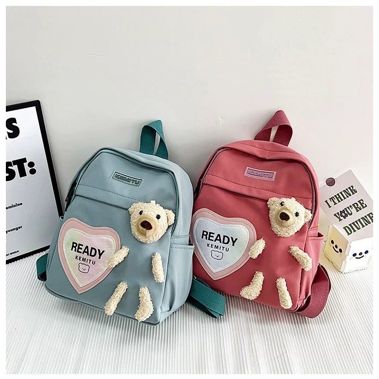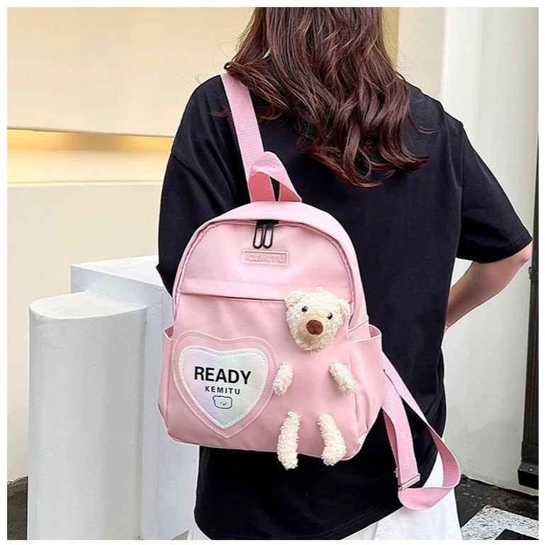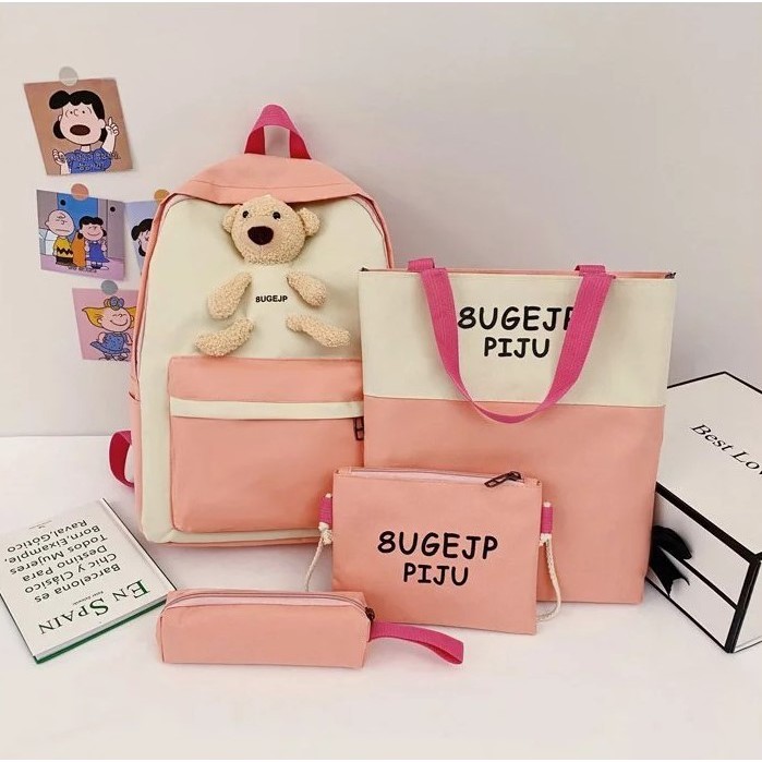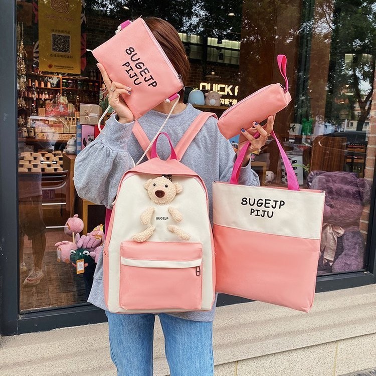 1011#กระเป๋าเซต4ชิ้นหมีน้อยกระเป๋าสะพายหลังใบใหญ่ 1 ใบ แถมฟรี ใบเล็กไปอีก 3ใบ