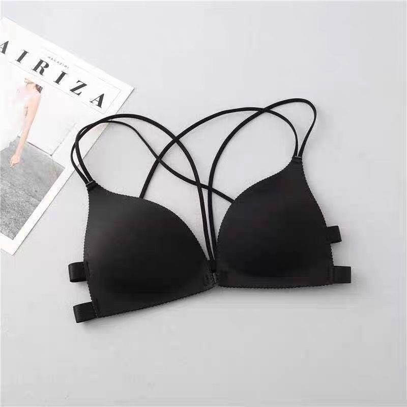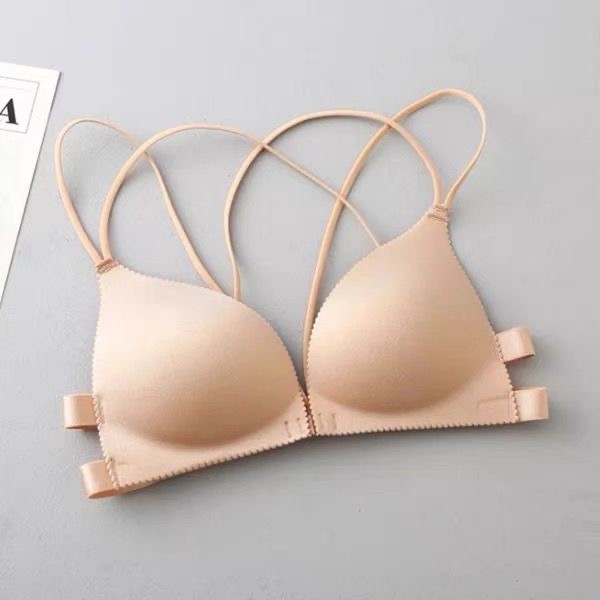 ชุดชั้นใน สายเดี่ยว สายไขว้ B021 เสื้อใน ตะขอหน้า ฟองน้ำรูปมือ ดันทรง ผ้าฟองน้ำ แบบบาง