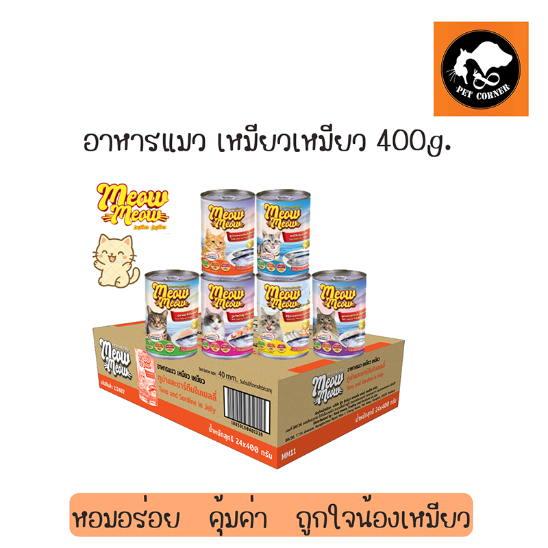 Meow Meow เหมียว เหมียว อาหารแมวแบบเปียก กระป๋อง 400 กรัม