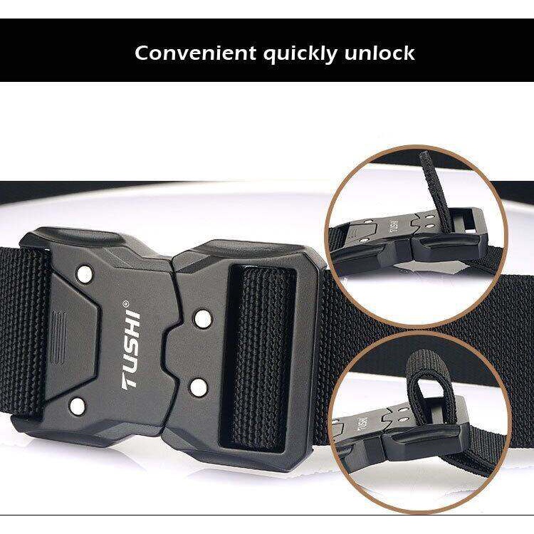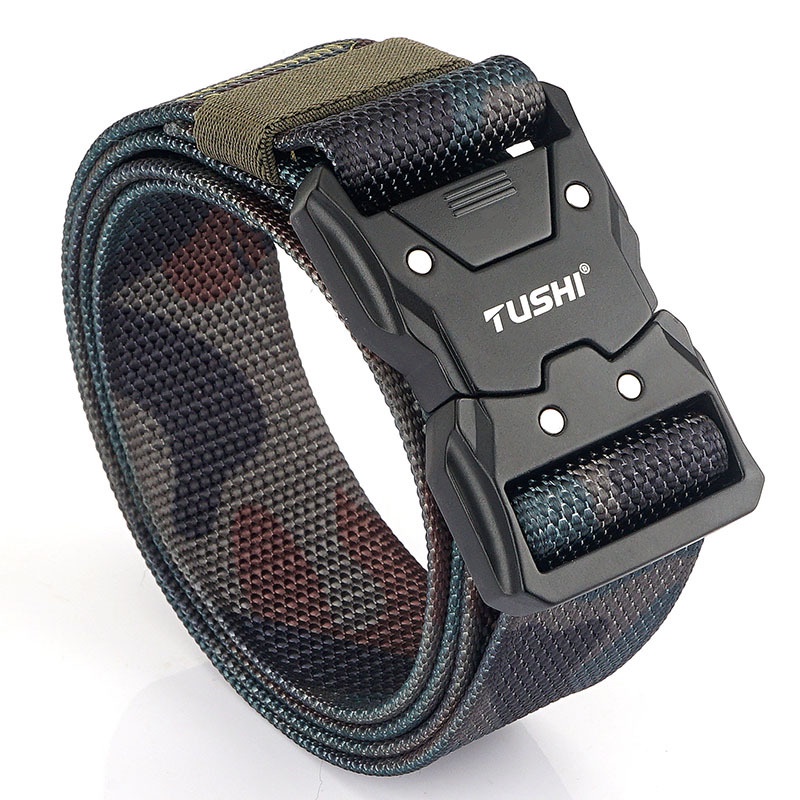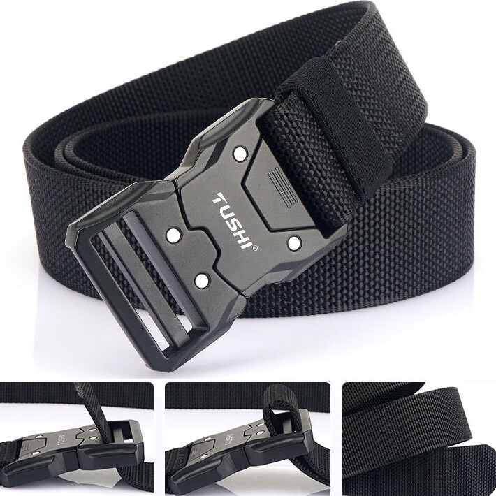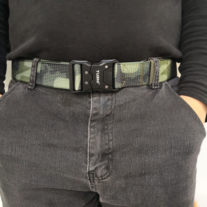 ใหม่ เข็มขัดผู้ชาย หัวเข็มขัด กดปุ่ม เข็มขัดปีนเขา