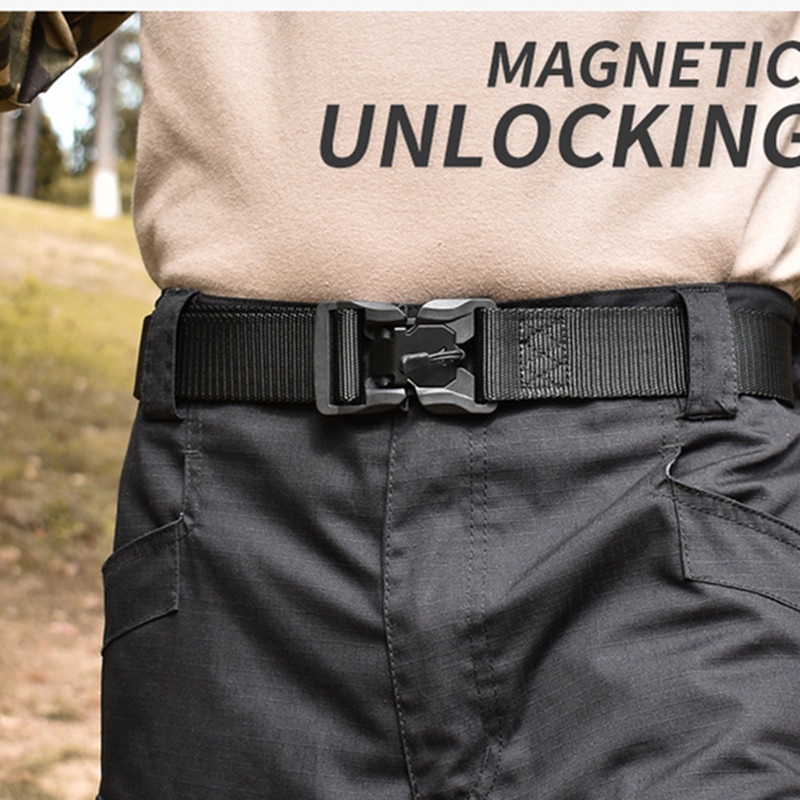🔥ส่งไวจากไทย🔥 เข็มขัดผู้ชาย เข็มขัดยุทธวิธี เข็มขัดปีนเขา สายไนลอน มีหลากหลายสี หัวเข็มขัด แบบล็อคแม่เหล็ก สวมใส่ง่าย แข็งแรง ทนทาน ไม่ต้องเจาะรู: สีดำ