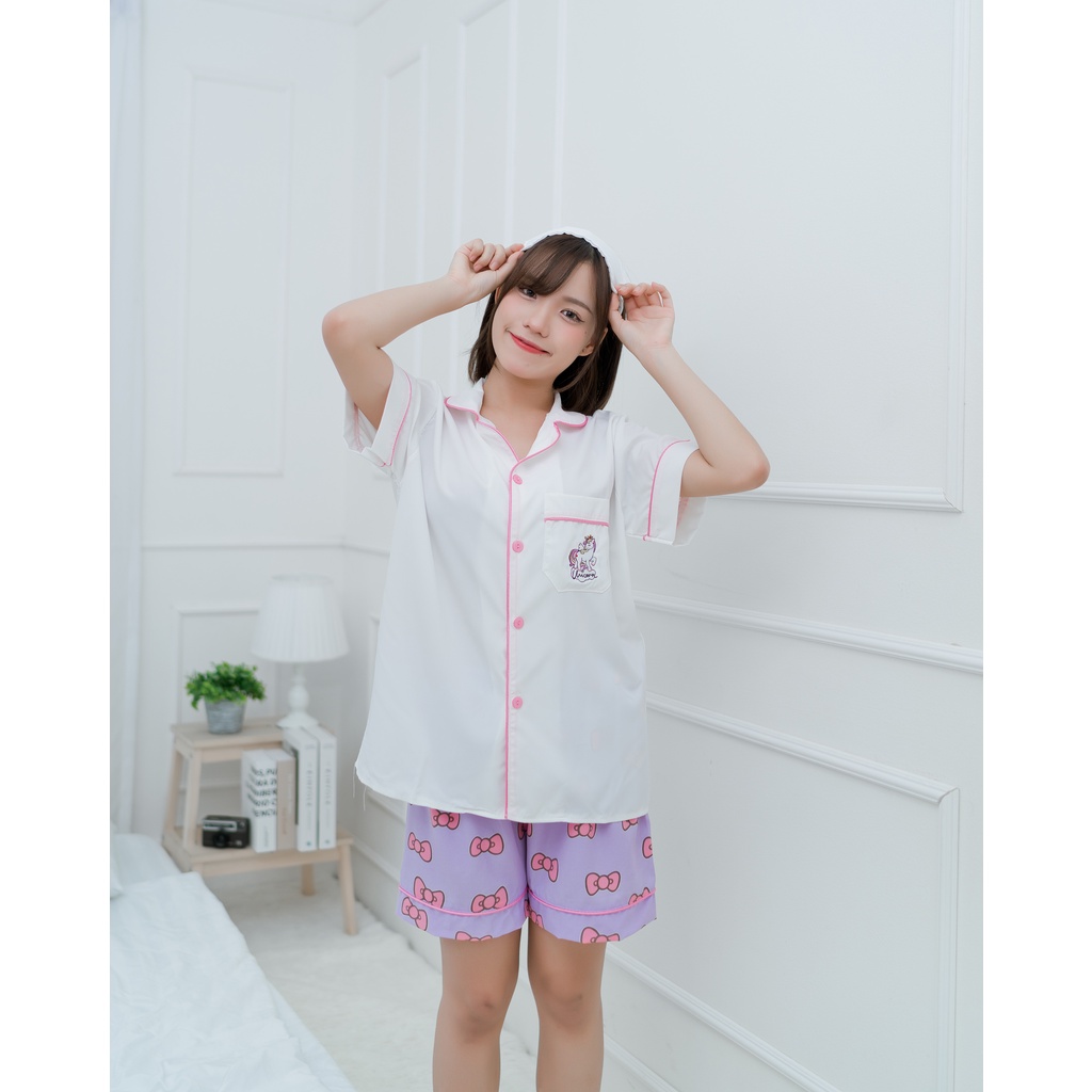 Fleurladyz.ชุดนอนแขนสั้นขาสั้น ผ้าไหมอิตาลี (มีหลายลาย)