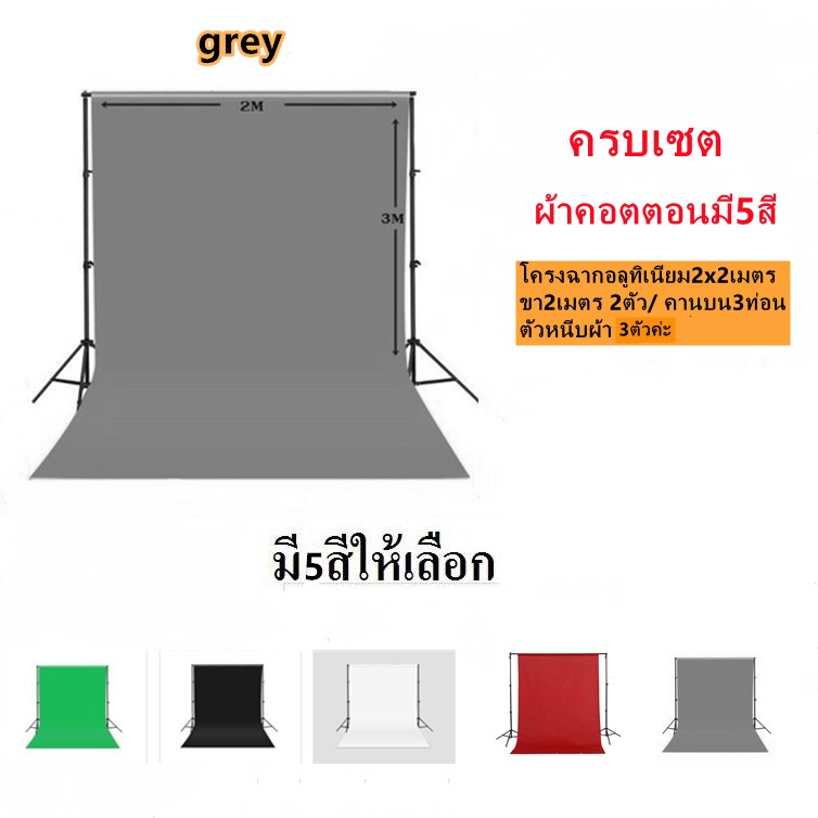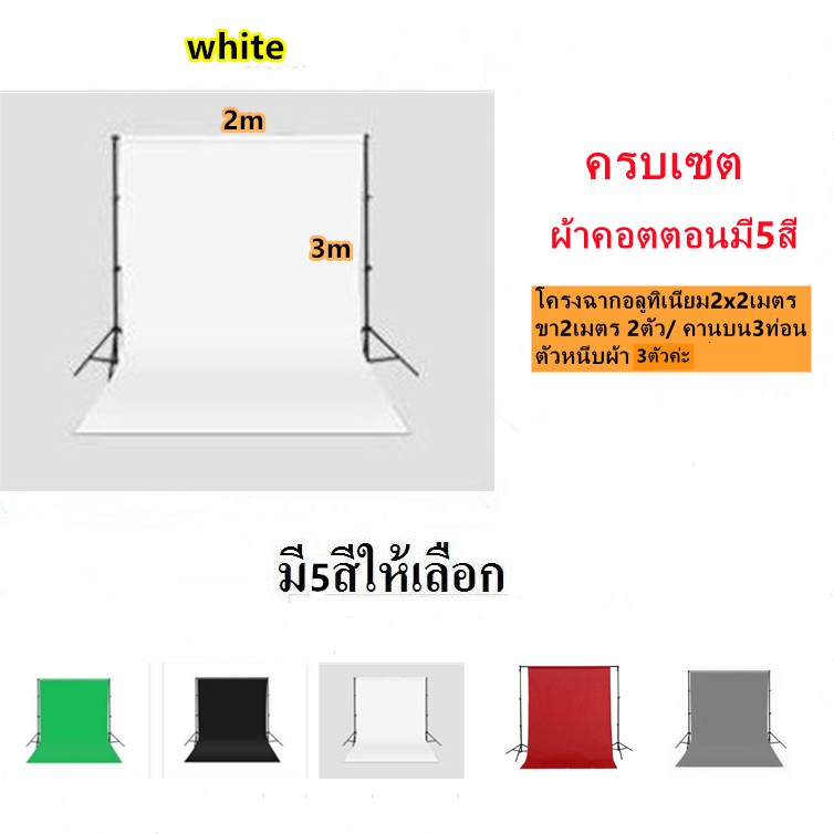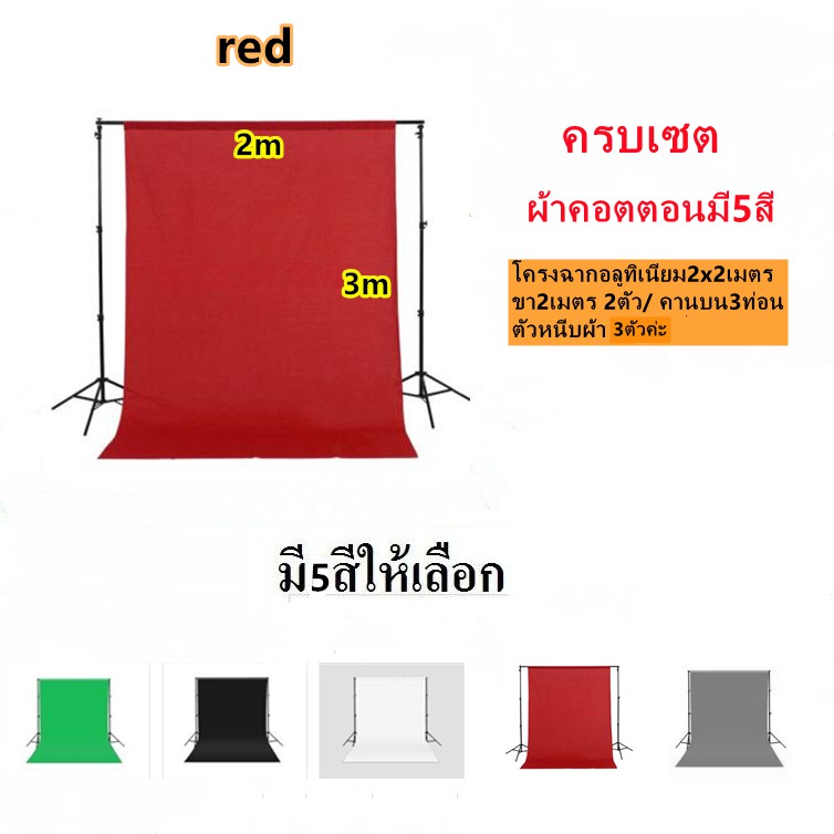 ฉากถ่ายรูปขนาด 2x3เมตร มี5สีเลือกได้ ครบเซต (โครงฉากอลูทิเนียม2x2เมตร ขา2เมตร 2ตัว/ คานบน3ท่อน และตัวหนีบผ้า3ตัวค่ะ)