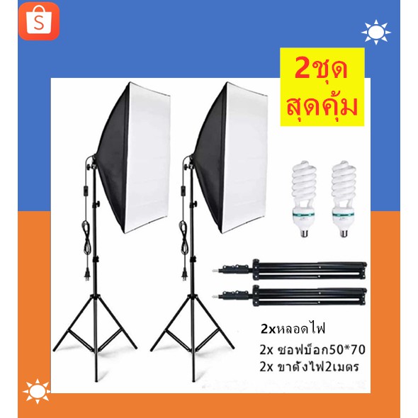 สตูดิโอถ่ายภาพ ไฟต่อเนื่อง ไฟสตูดิโอ 50x70 Softbox มีสองชุดเหมือนในรูปพร้อมหลอดไฟE27105W