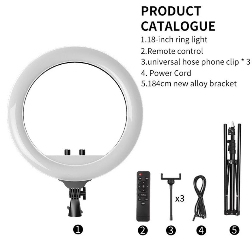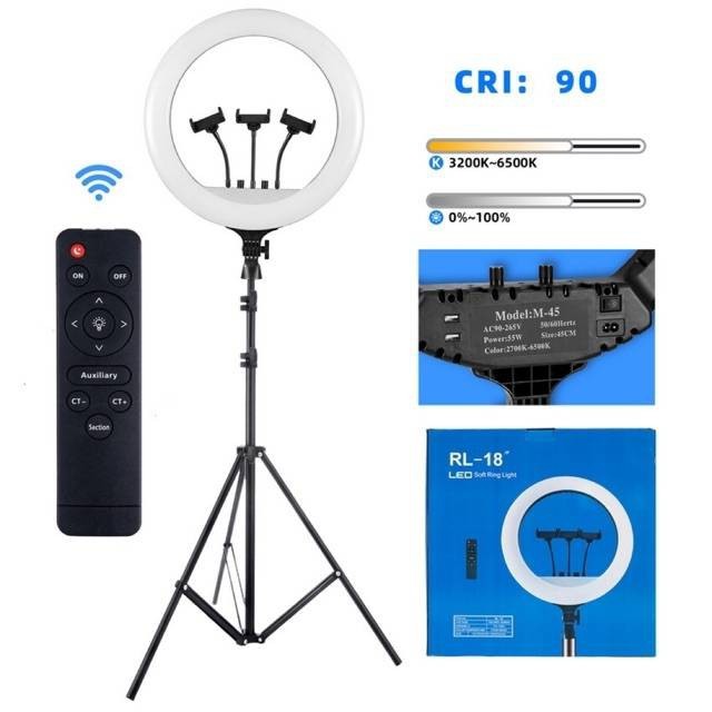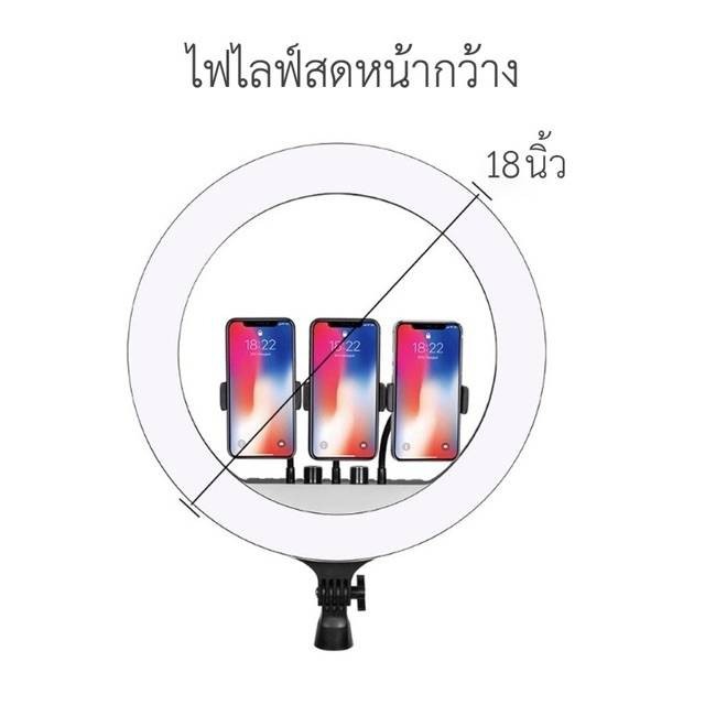 ชุดไฟไลฟ์สด RL-18 ปรับสีส้ม-ขาว และความแรงแสงได้ตามต้องการ.แถมกระเป๋า ที่จับมือถือ 3 เครื่อง มีรีโมทควบคุมไฟ ขาตั้งกล้อง