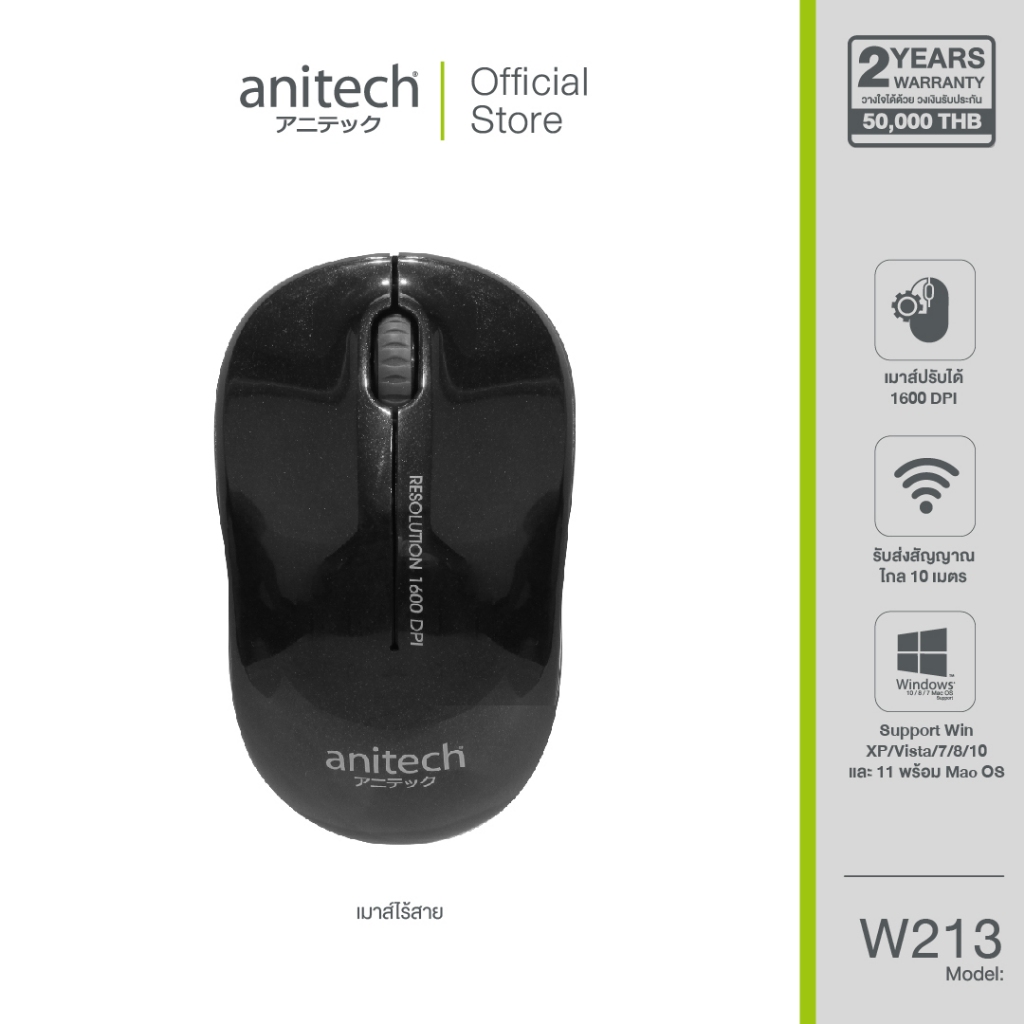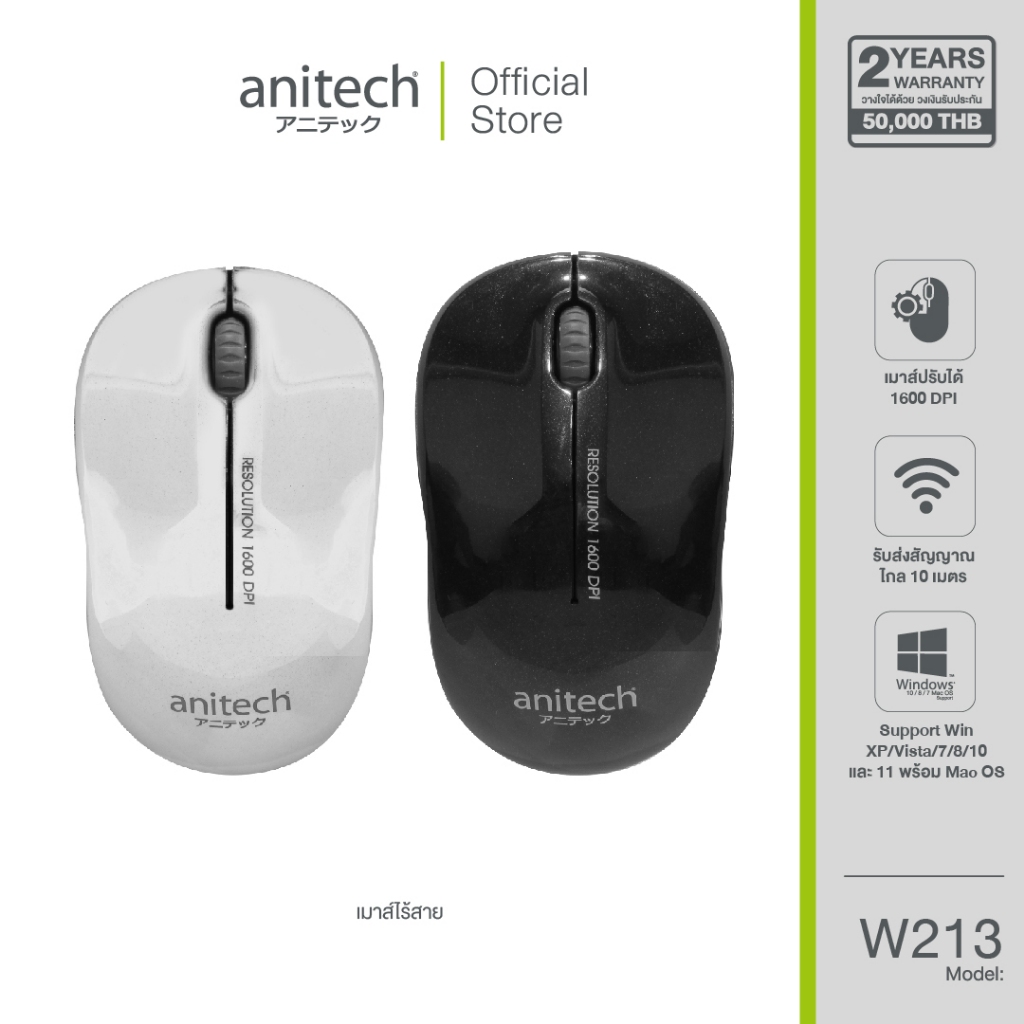 Anitech แอนิเทค เมาส์ไร้สาย WIRELESS MOUSE W213 ระยะการใช้งานห่างสูงสุด 10 เมตร รับประกัน 2 ปี *สินค้าเคลียร์**