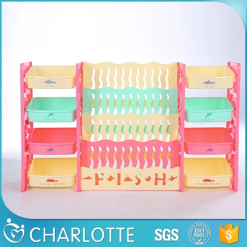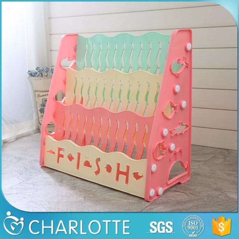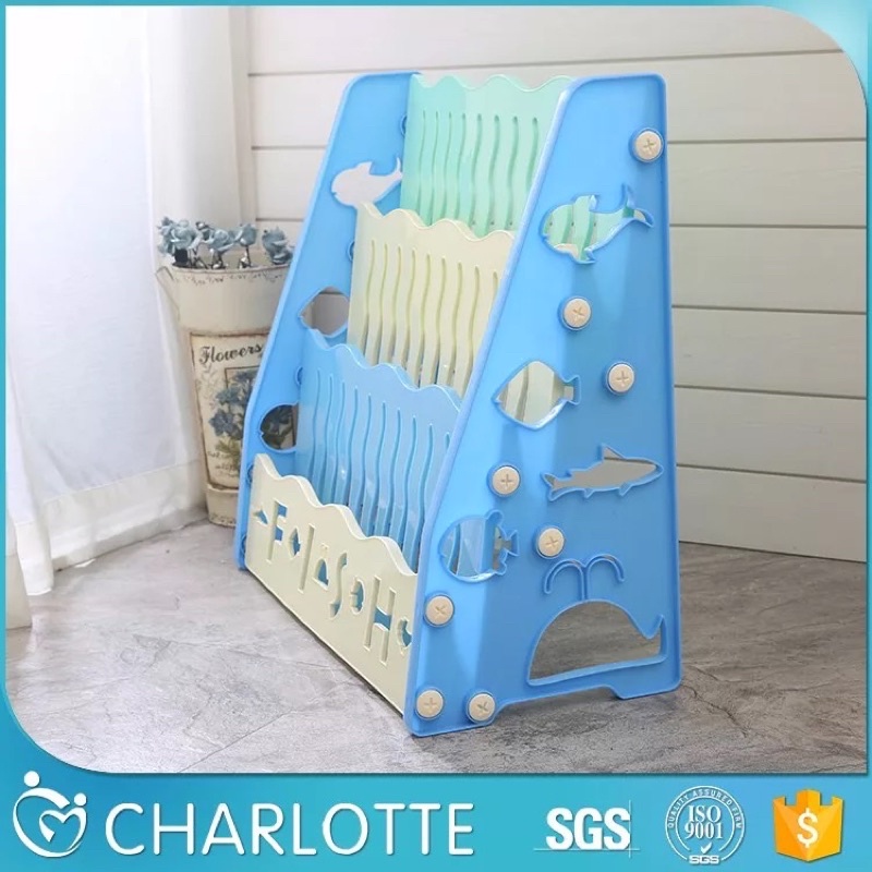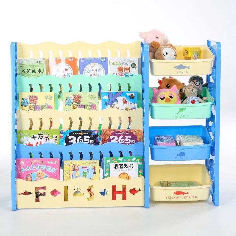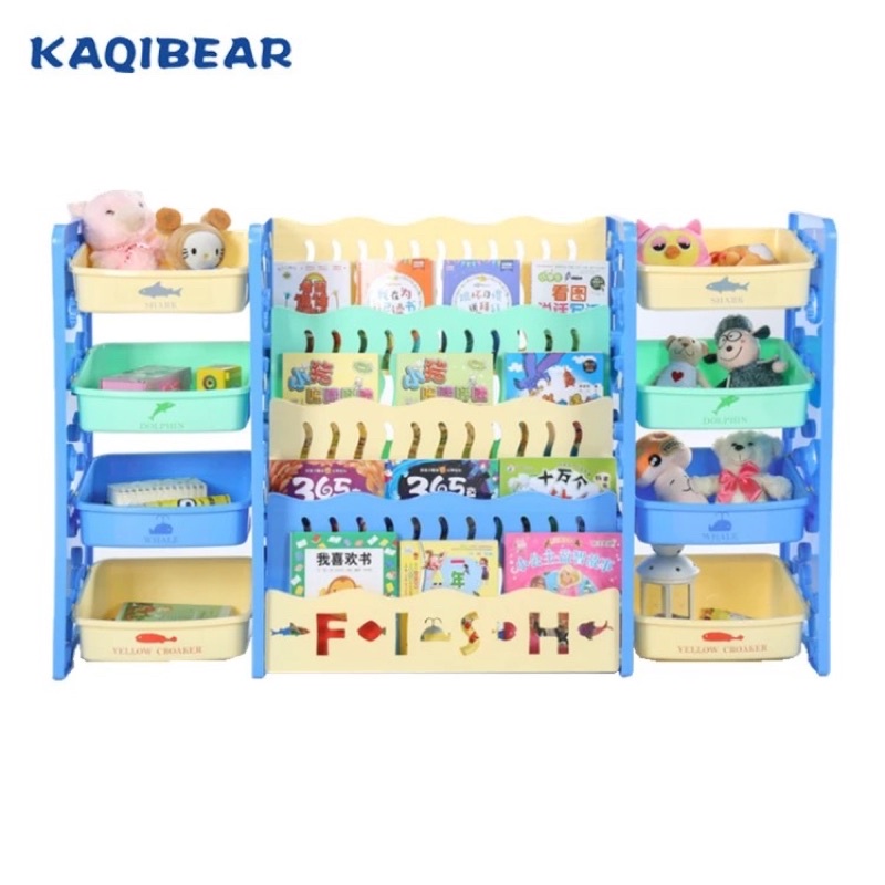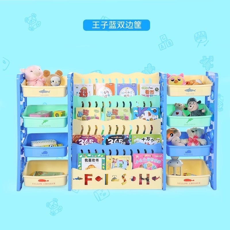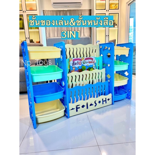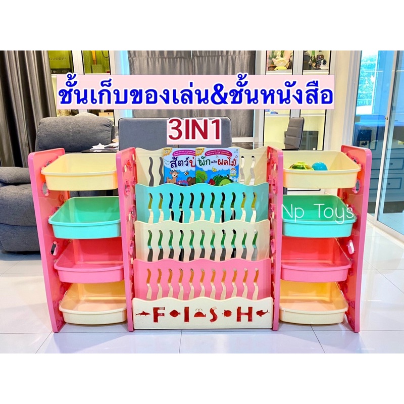 ชั้นวางหนังสือเด็กพร้อมชั้นวางของเล่น2ข้าง 3in1