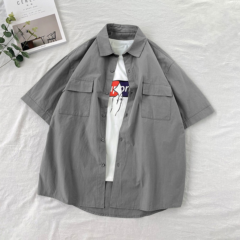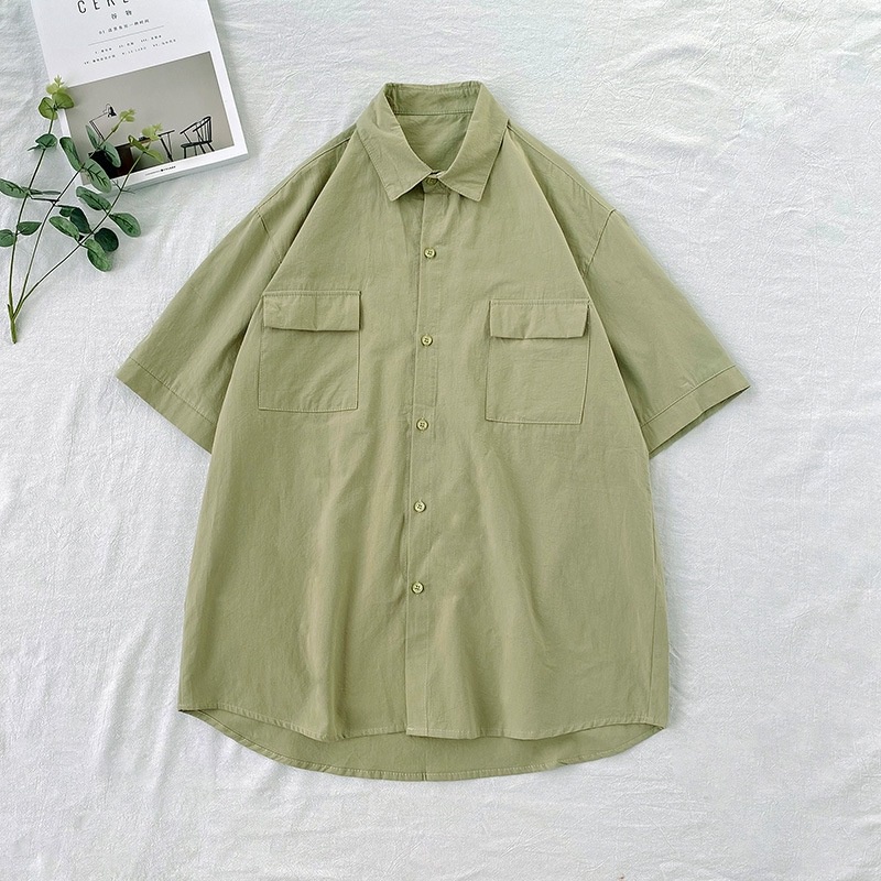 🔥 เสื้อเชิ้ตเกาหลี แขนสั้น สีพื้น มีไซซ์ M L XL XXL ,6 สีให้เลือก(G0488)