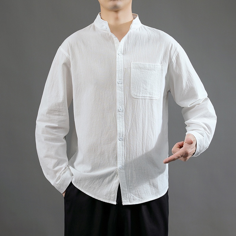 เสื้อลินินฤดูร้อน, เสื้อเชิ้ตแขน 3/4 ของผู้ชาย, , สีดำ,M-5XL(1020)