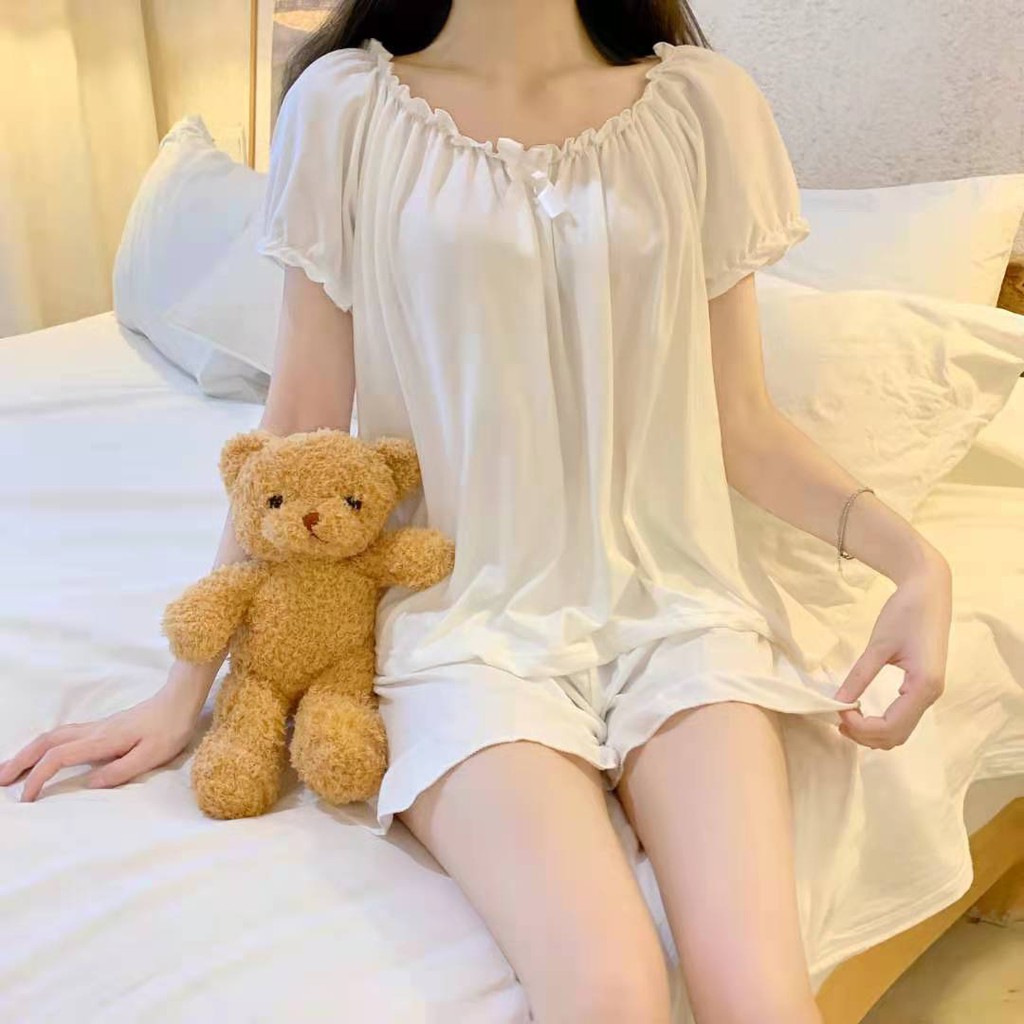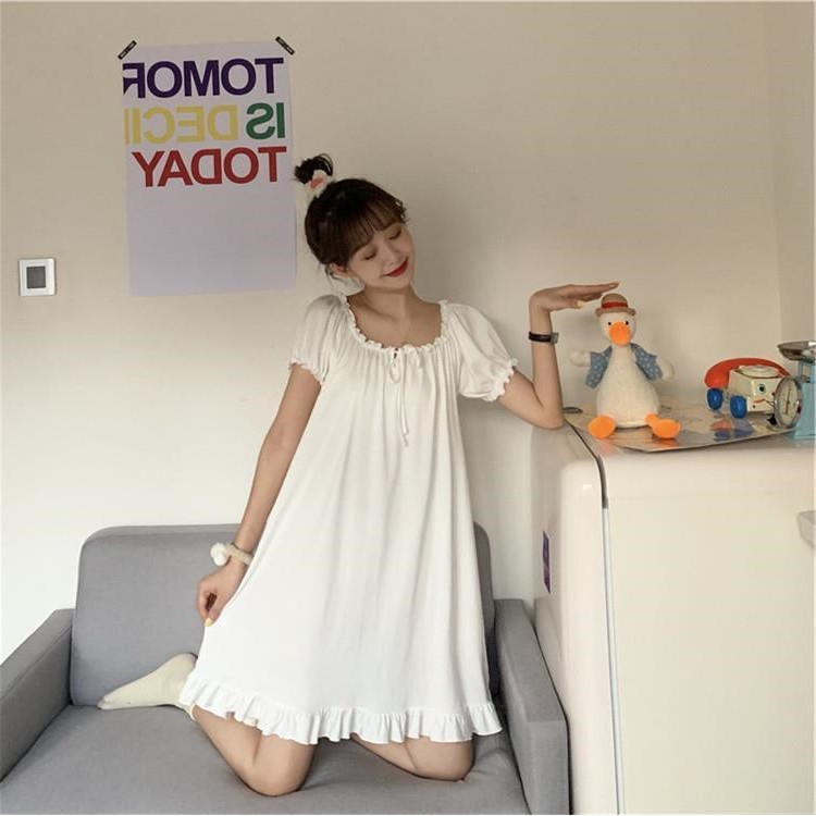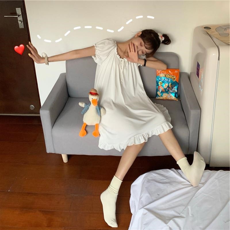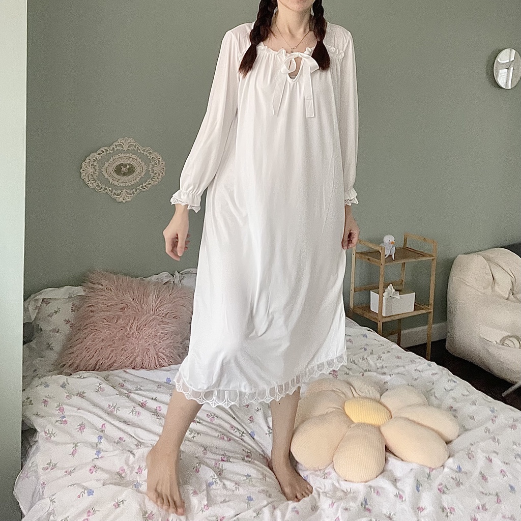 🚚พร้อมส่ง 🐼DayDu ชุดนอนเดรสลูกไม้แขนยาวสไตล์เกาหลีวผ้านิ่มใส่สบาย ไซส์ใหญ่M-_XL D03
