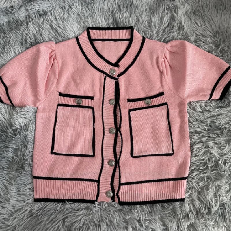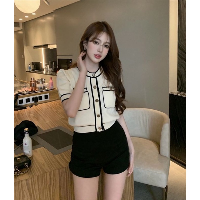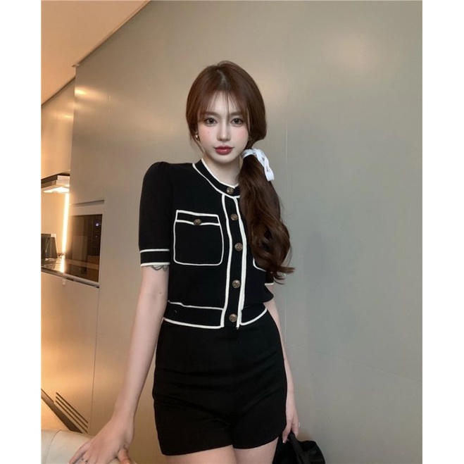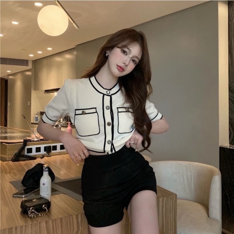 JJ Shop💜พร้อมส่ง เสื้อไหมพรมแขนสั้น หรูหราดูแพงมากจ้าแม่ "47109"