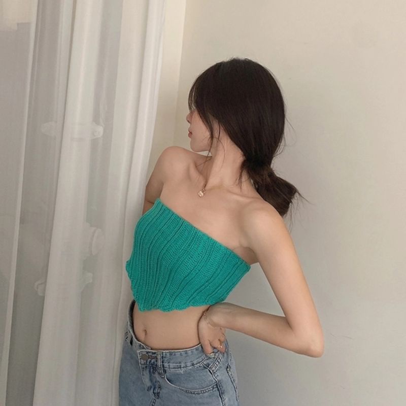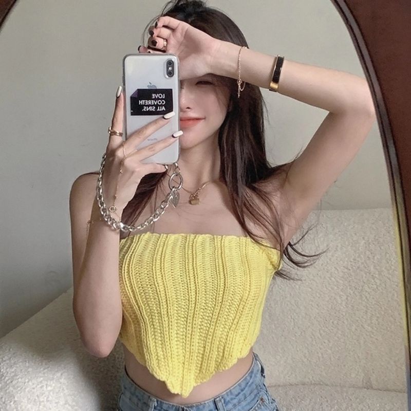 JJ Shop💜พร้อมส่ง เกาะอกถักไหมพรม ทรงสามเหลี่ยมสุดเก๋ "E203" -N