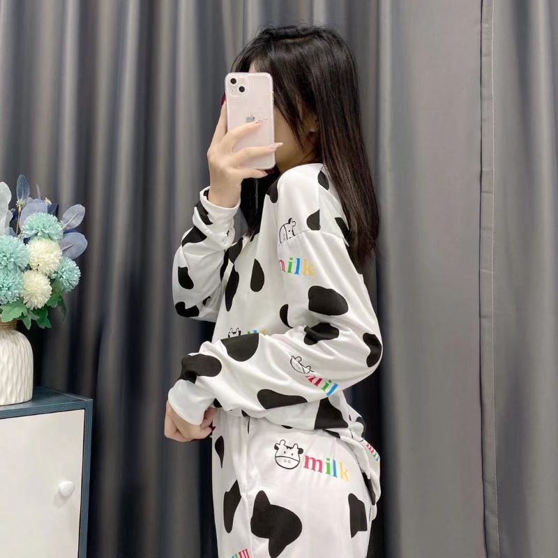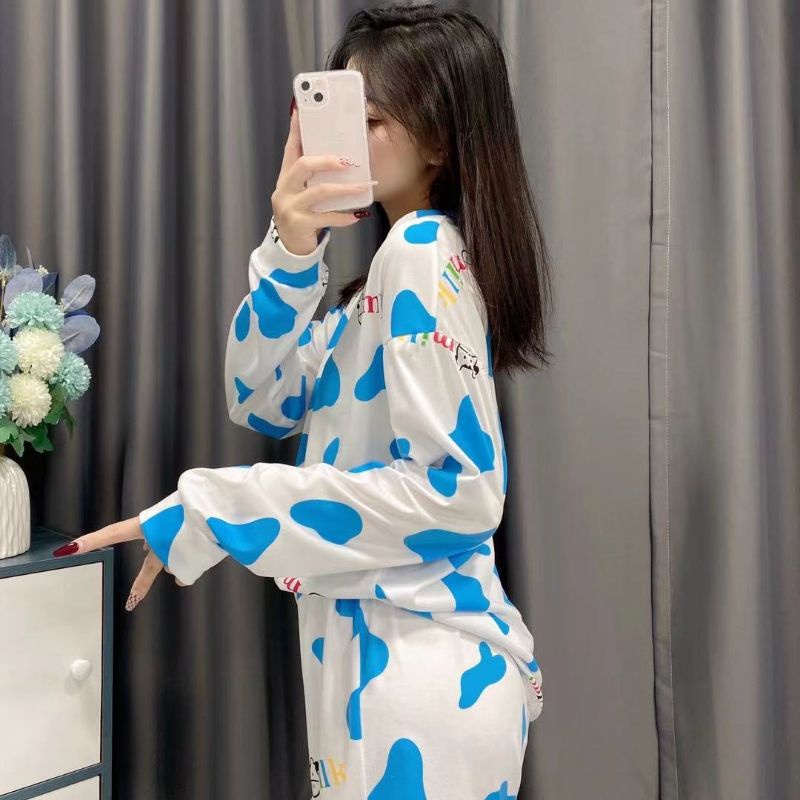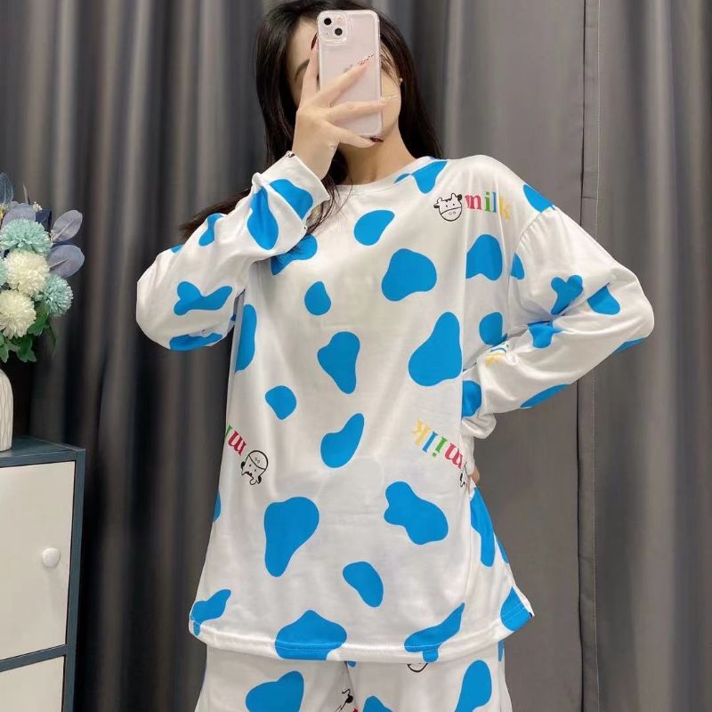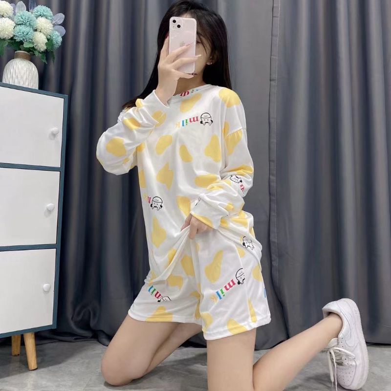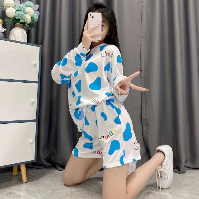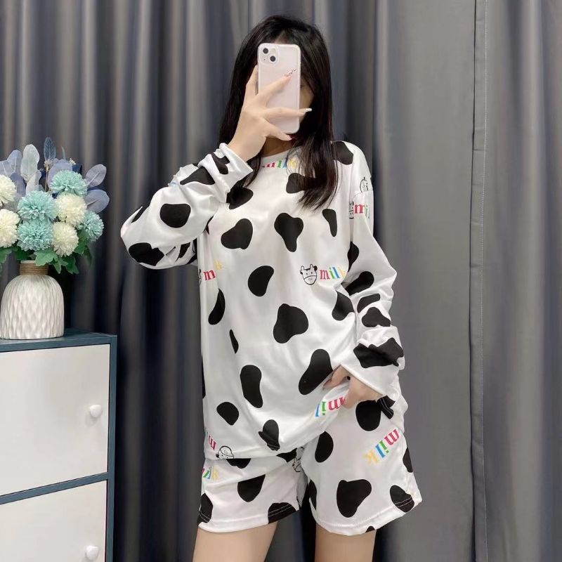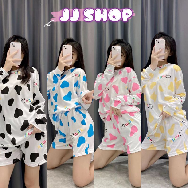 JJ Shop💜พร้อมส่ง ชุดเซ็ท เสื้อแขนยาว+กางเกงขาสั้น ลายวัวน่ารักคิ้วมาก "DX-6318" 06 -N
