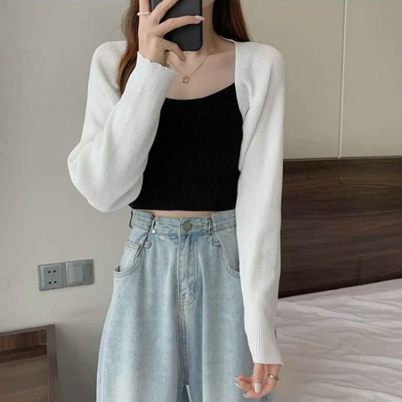 JJ Shop💜พ ร้อมส่ง เสื้อคลุมไหมพรมครึ่งตัว ใส่สบายมาก ผ้าร่องน่ารัก "23150"