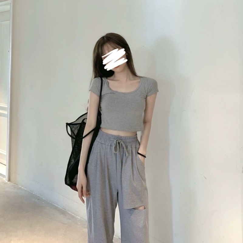 JJ Shop💜พร้อมส่ง ชุดเซ็ม เสื้อแขนสั้น+กางเกงขายาว ผ้านิ่มใส่สยายใส่ง่ายมาก "DX-Set-GrayBlack"