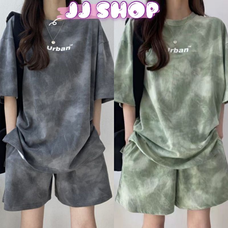 JJ Shop💜พร้อมส่ง เสื้อยืดแขนวั้น+กางเกงขาสั้น ลายมัดย้อมน่ารัก "DX-Urban™-9155" -N 06