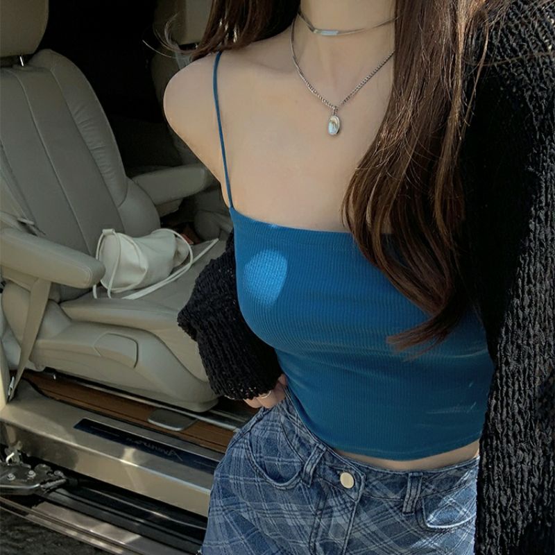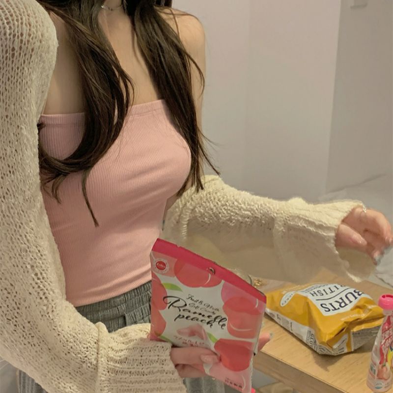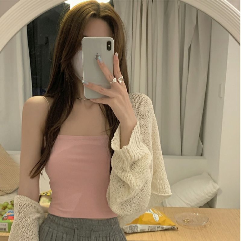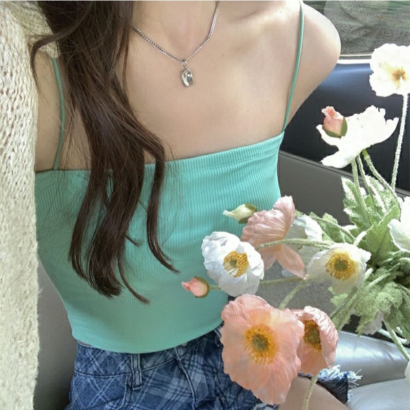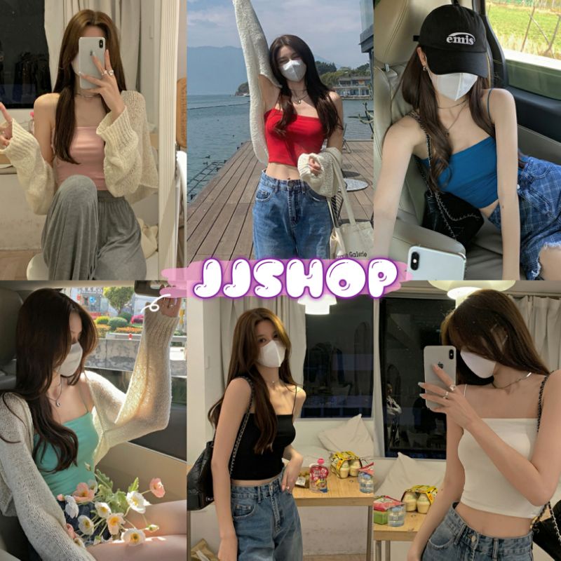 JJ Shop💜พร้อมส่ง เสื้อสายเดี่ยวไหมพรม ผ้าน่องใส่สบายน่ารักสไตล์เกาหลี "W8823"