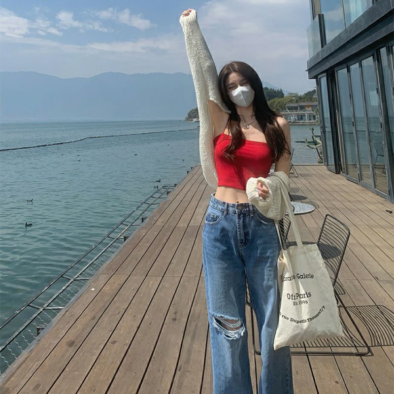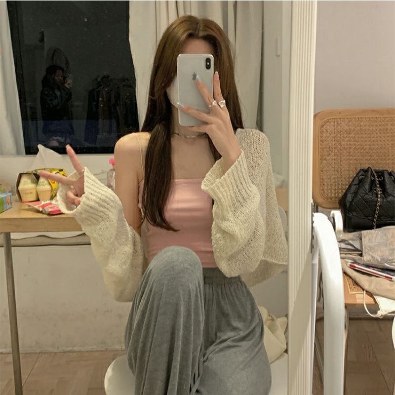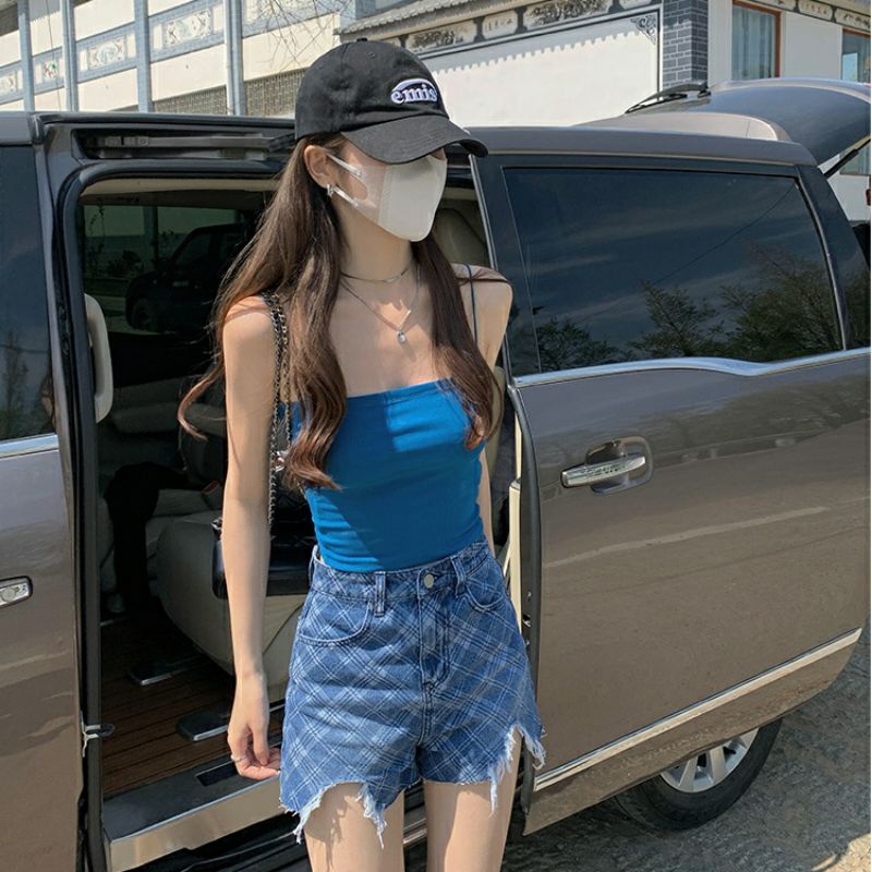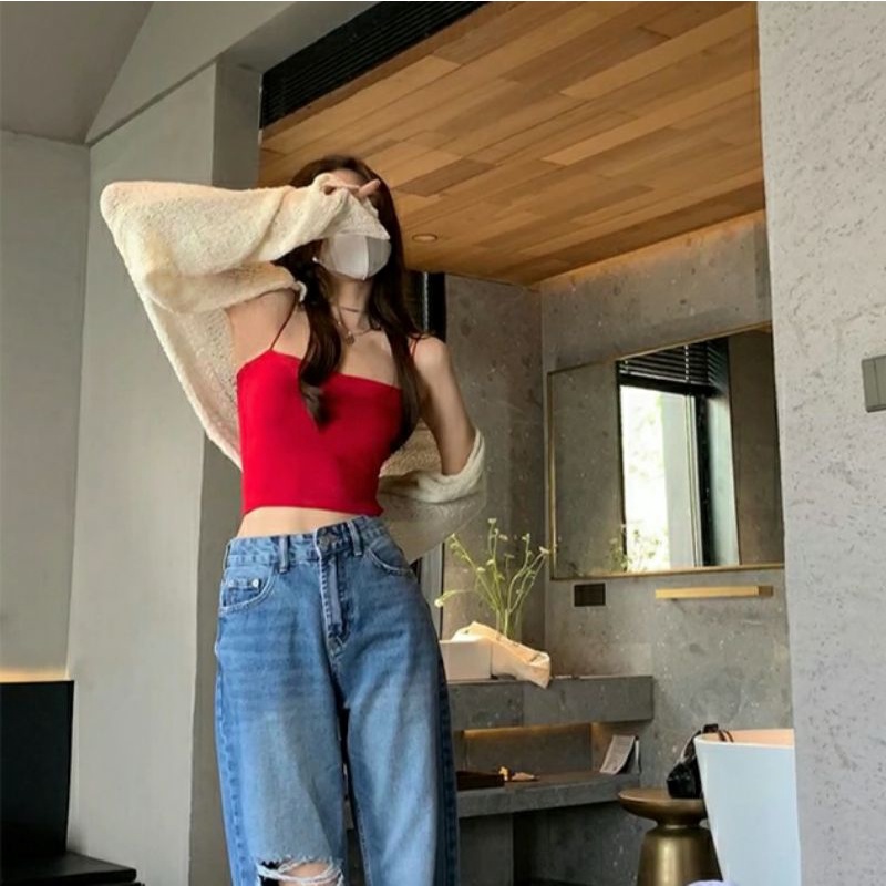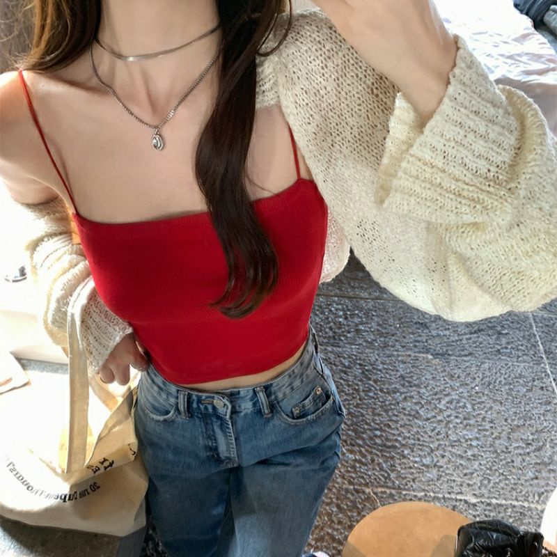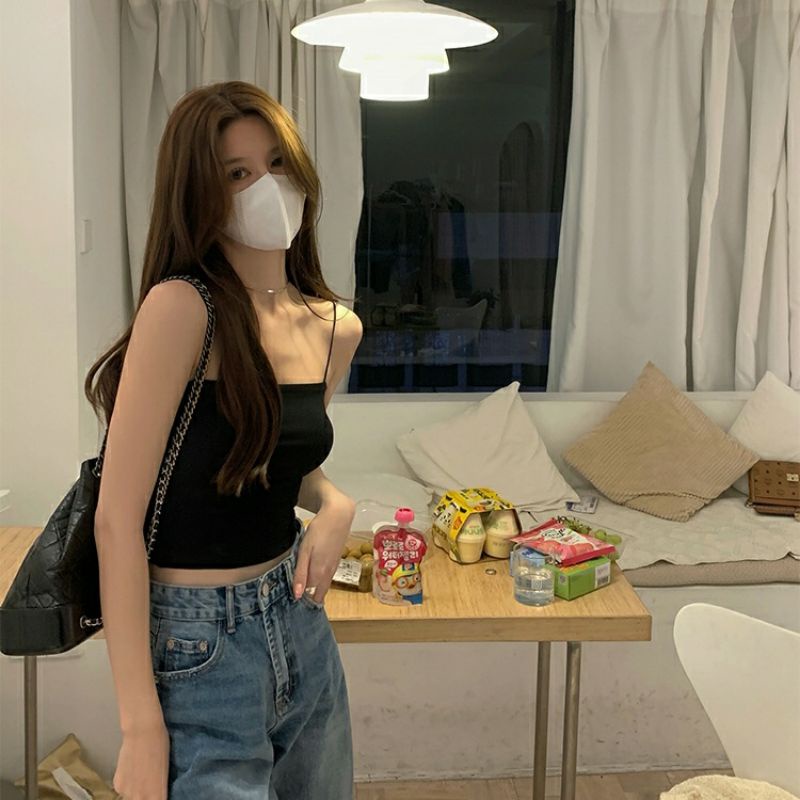 JJ Shop💜พร้อมส่ง เสื้อสายเดี่ยวไหมพรม ผ้าน่องใส่สบายน่ารักสไตล์เกาหลี "W8823"