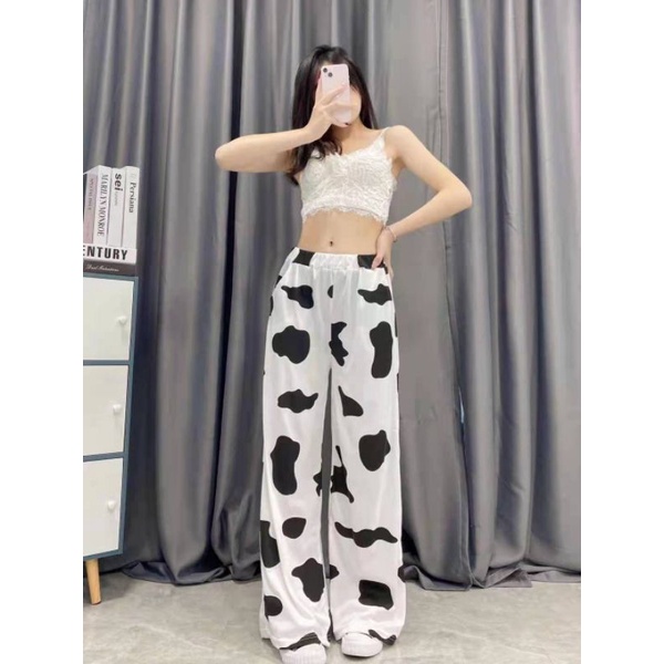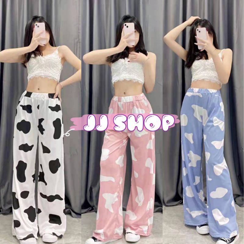 JJ shop💜 พร้อมส่ง กางเกงขายาวลายน้องวัว 3 สีน่ารักมาก " KU-Cow " 02