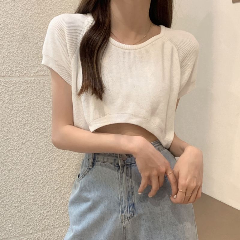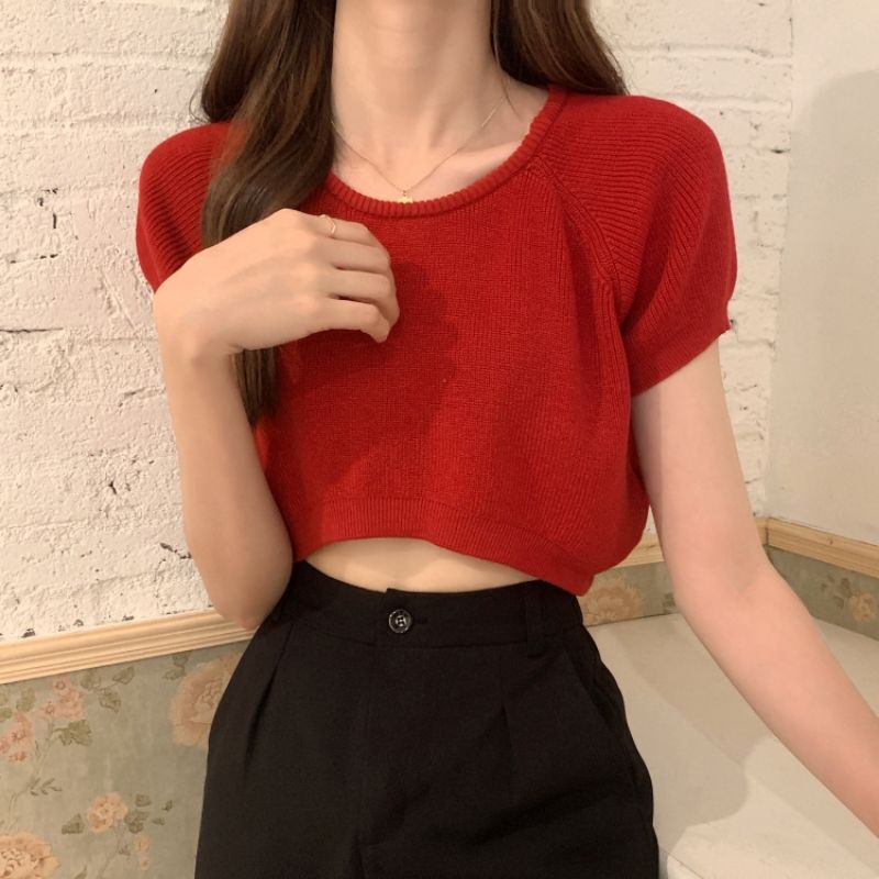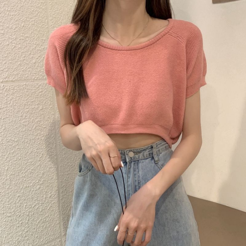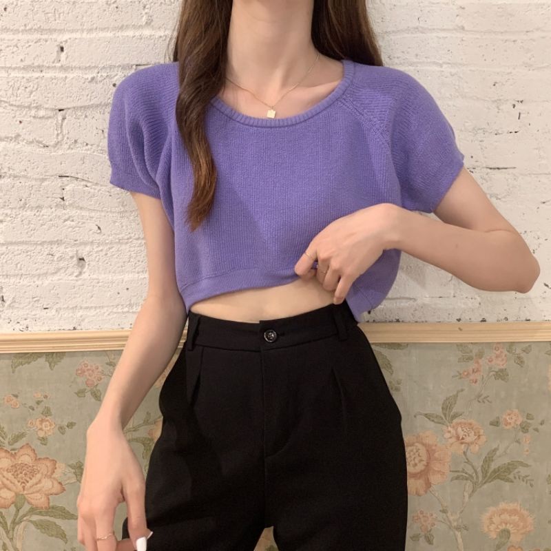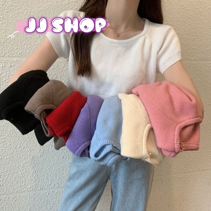 JJ Shop💜พร้อมส่ง เสื้อครอปไหมพรม ใส่สบายผ้านิ่มสีให้เลือกมากมาย "9572-1"