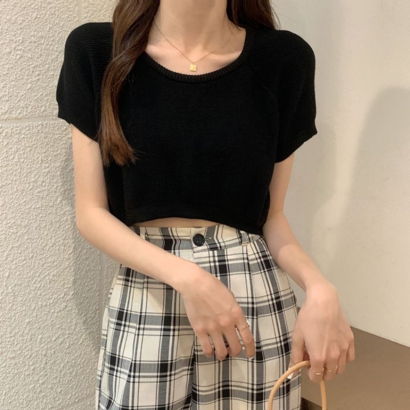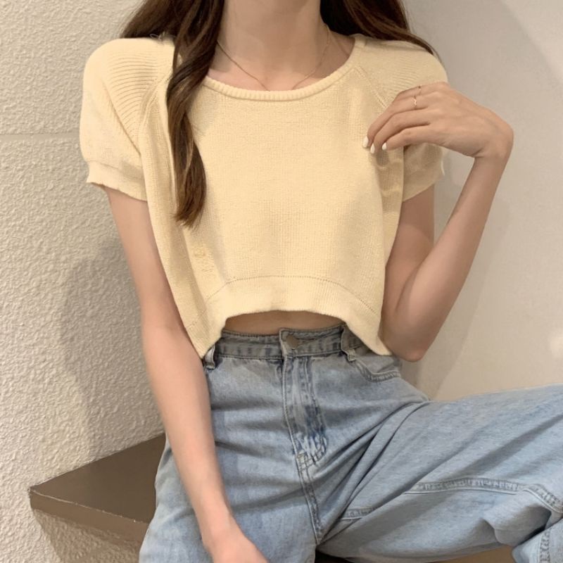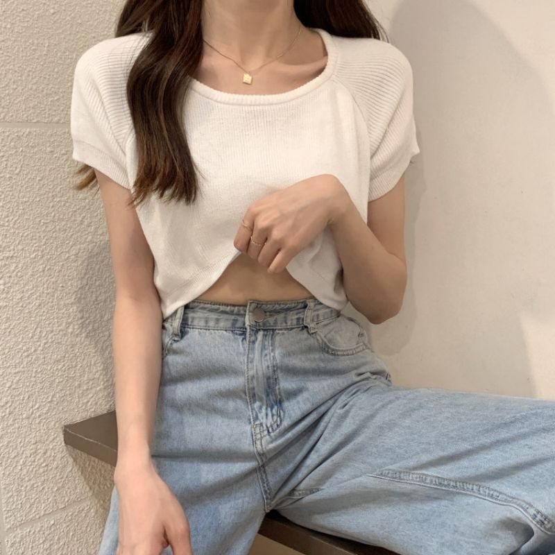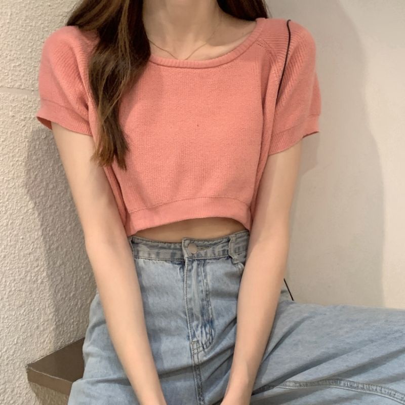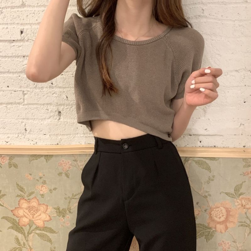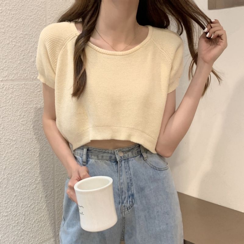 JJ Shop💜พร้อมส่ง เสื้อครอปไหมพรม ใส่สบายผ้านิ่มสีให้เลือกมากมาย "9572-1"