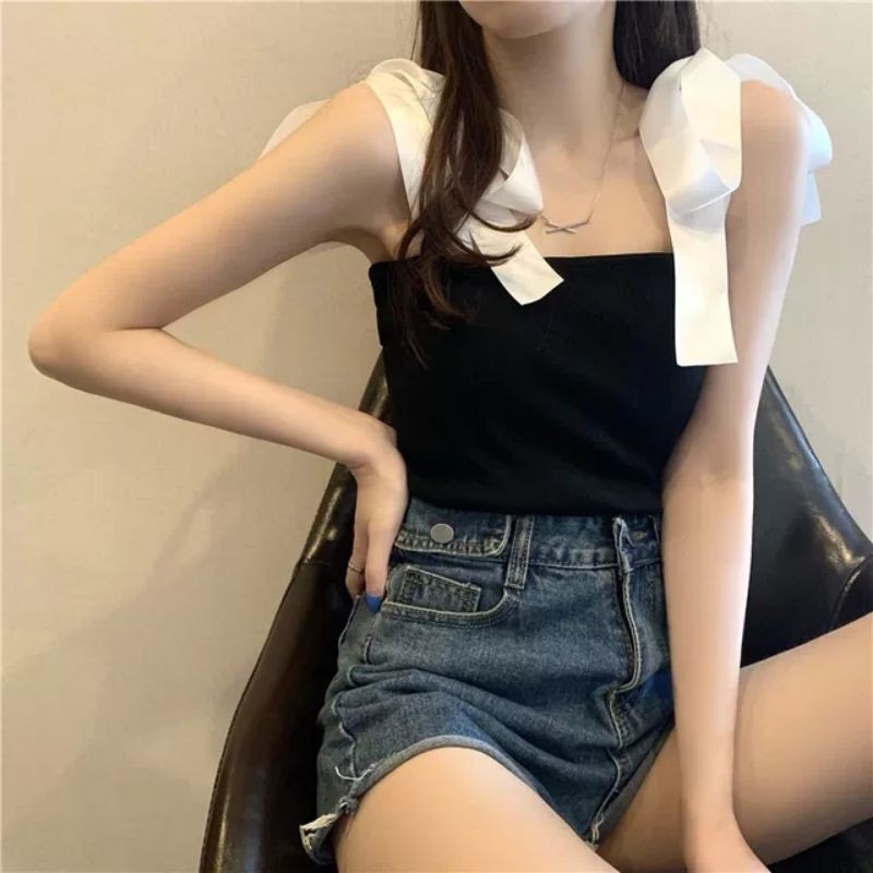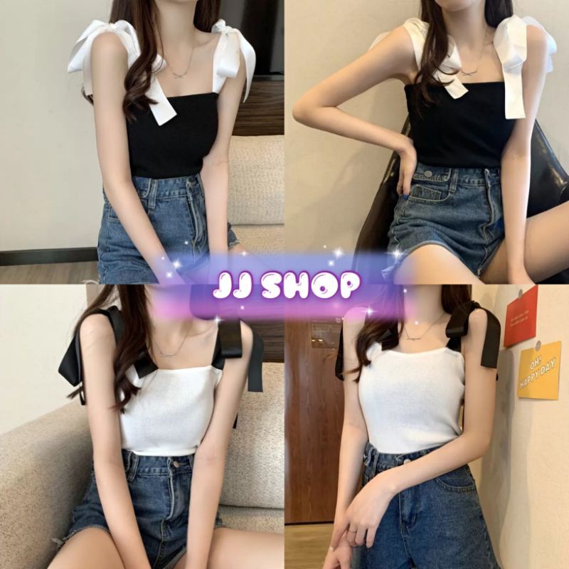 JJ Shop💓พร้อมส่ง เสื้อสายเดี่ยวพรมไหม สายผูกเป็นโบว์น่ารัก "98038"