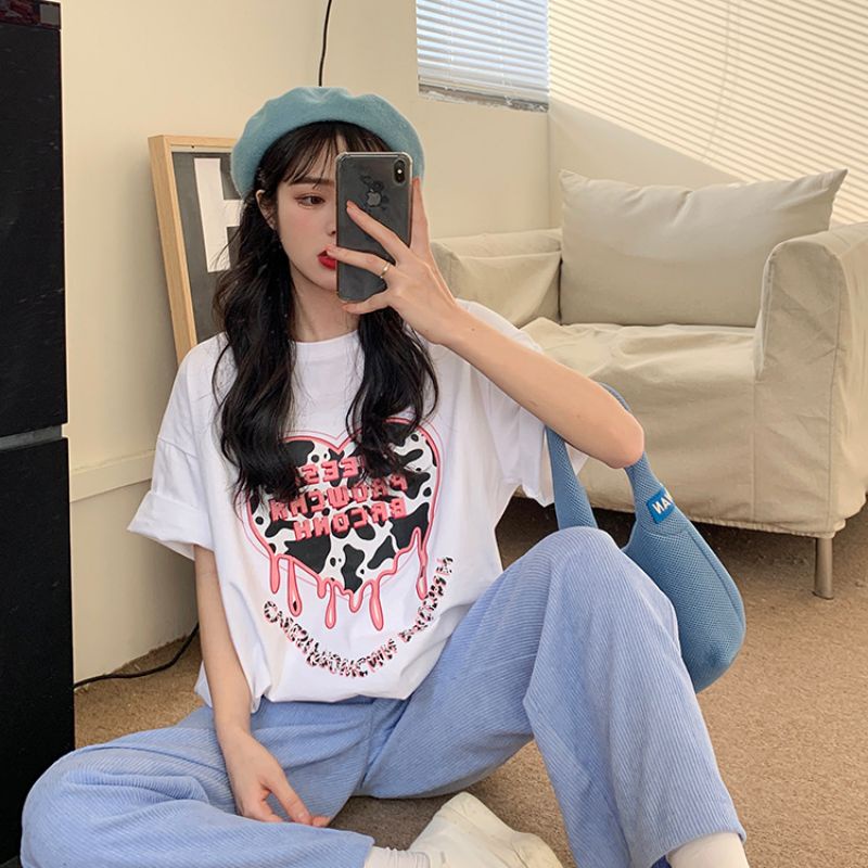 "โค้ดลดเพิ่ม SMEDDAY22"JJ Shop​💜​พร้อมส่ง เสื้อยืดแขนสั้นลายหัวใจน่ารัก "Dx-Heart" โค้ด 10.10 SMEDDAY1010 08