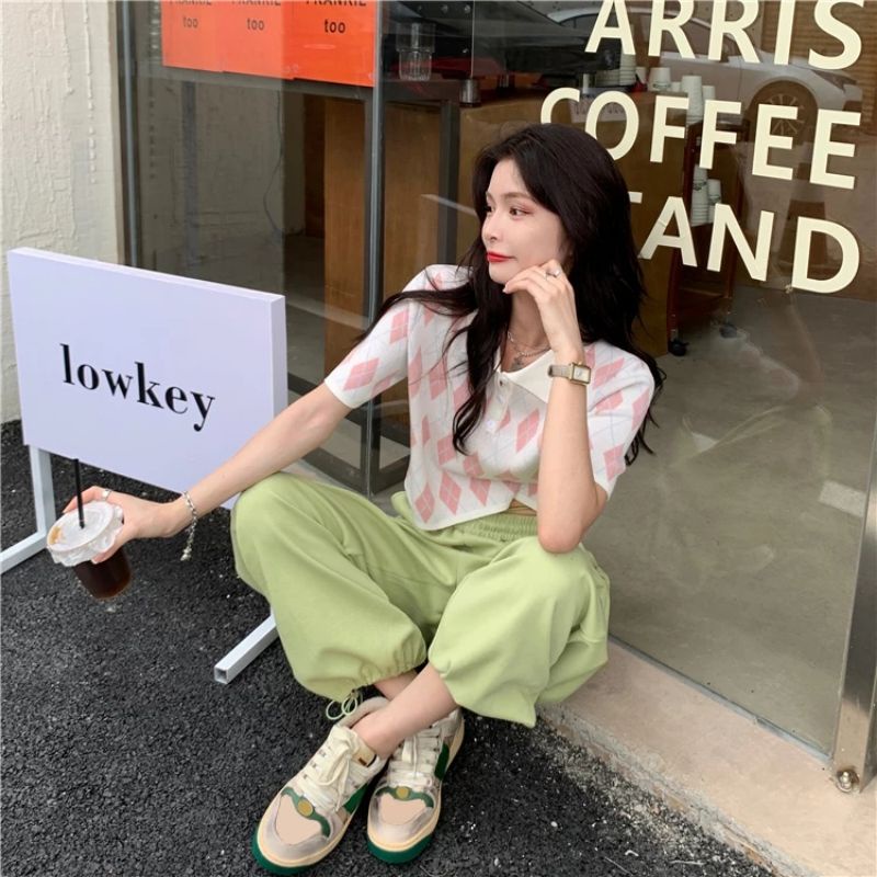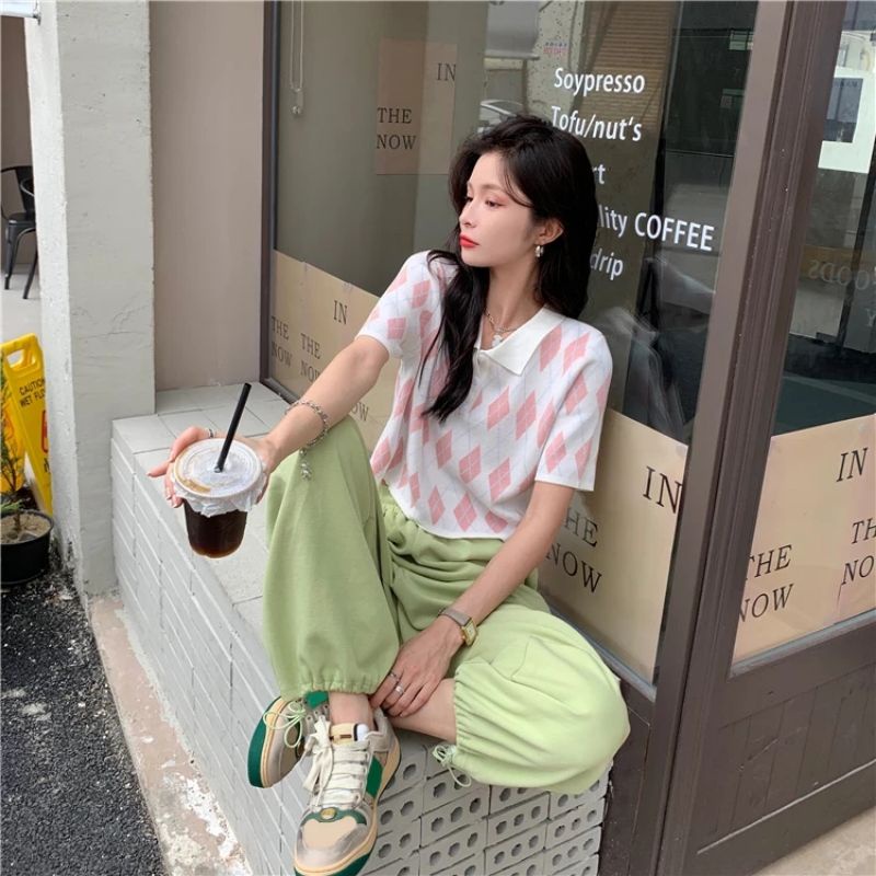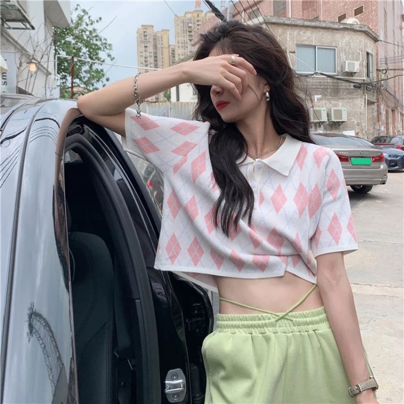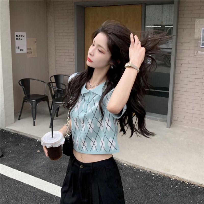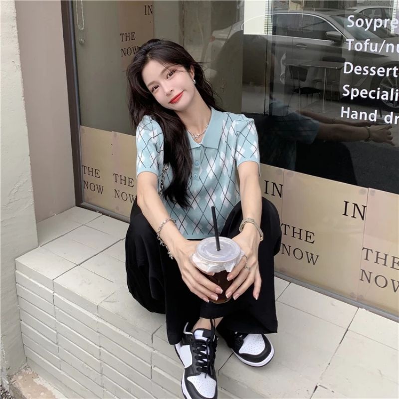JJ Shop💜พร้อมส่งเสื้อไหใพรมคอปก ลายตารากหมากรุก สีน่ารักมาก "66026" -N