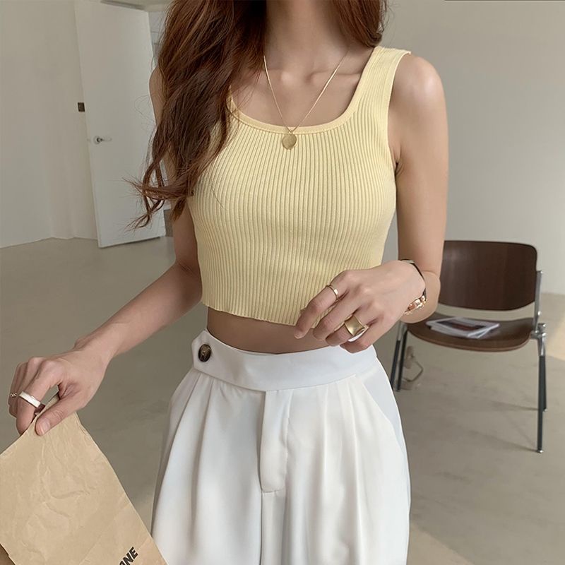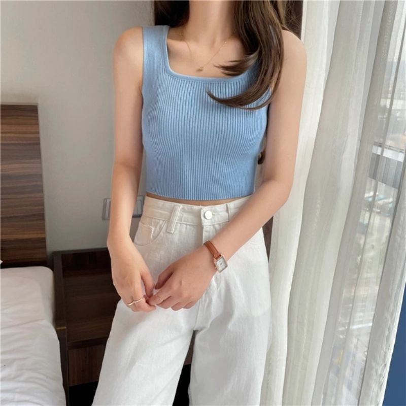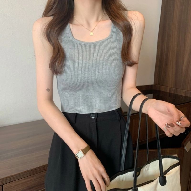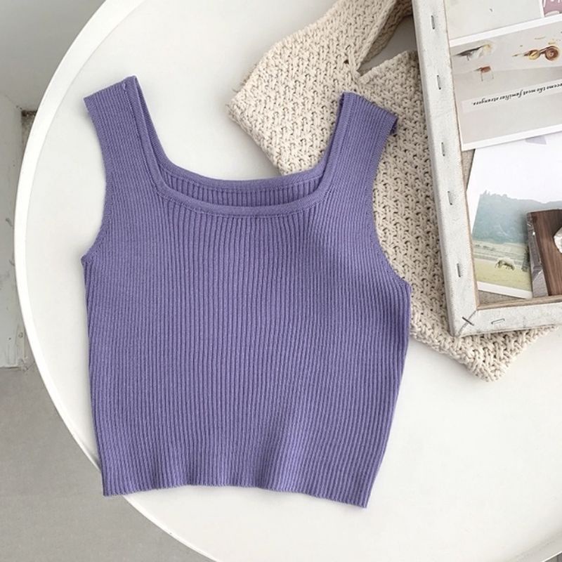 JJ Shop💜พร้อมส่ง เสื้อกล้ามไหมพรม ดีเทลผ้าร่องใส่สบาย "28019" -C