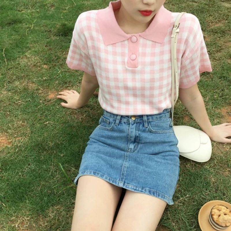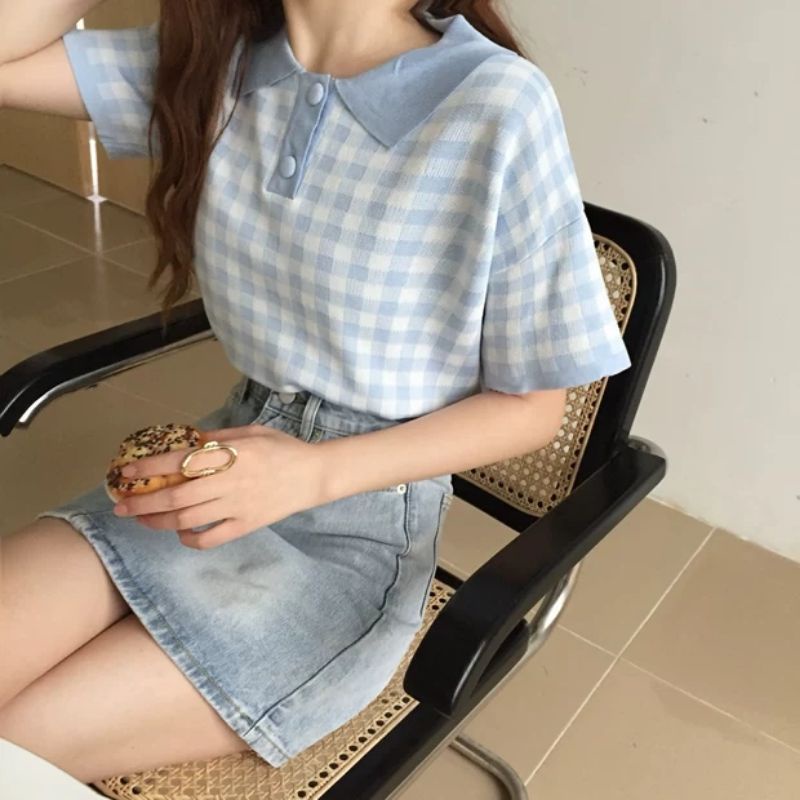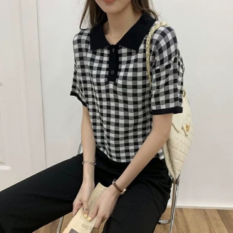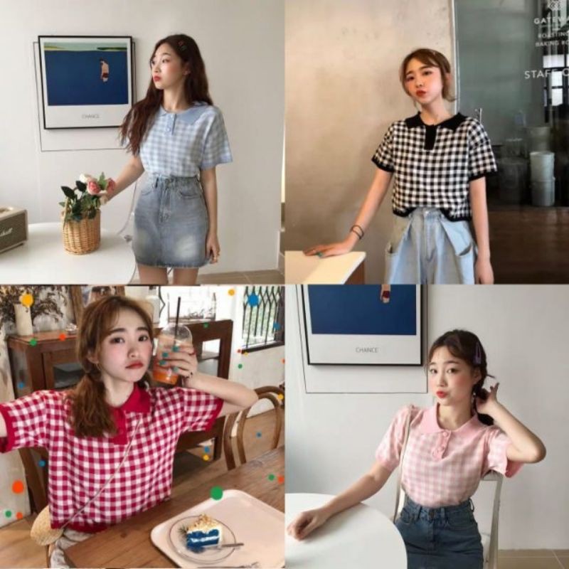 JJ Shop♡พร้อมส่ง♡ เสื้อแฟชั่นผ้าไหมพรมคอปก ลายทาง"3952-1" -N