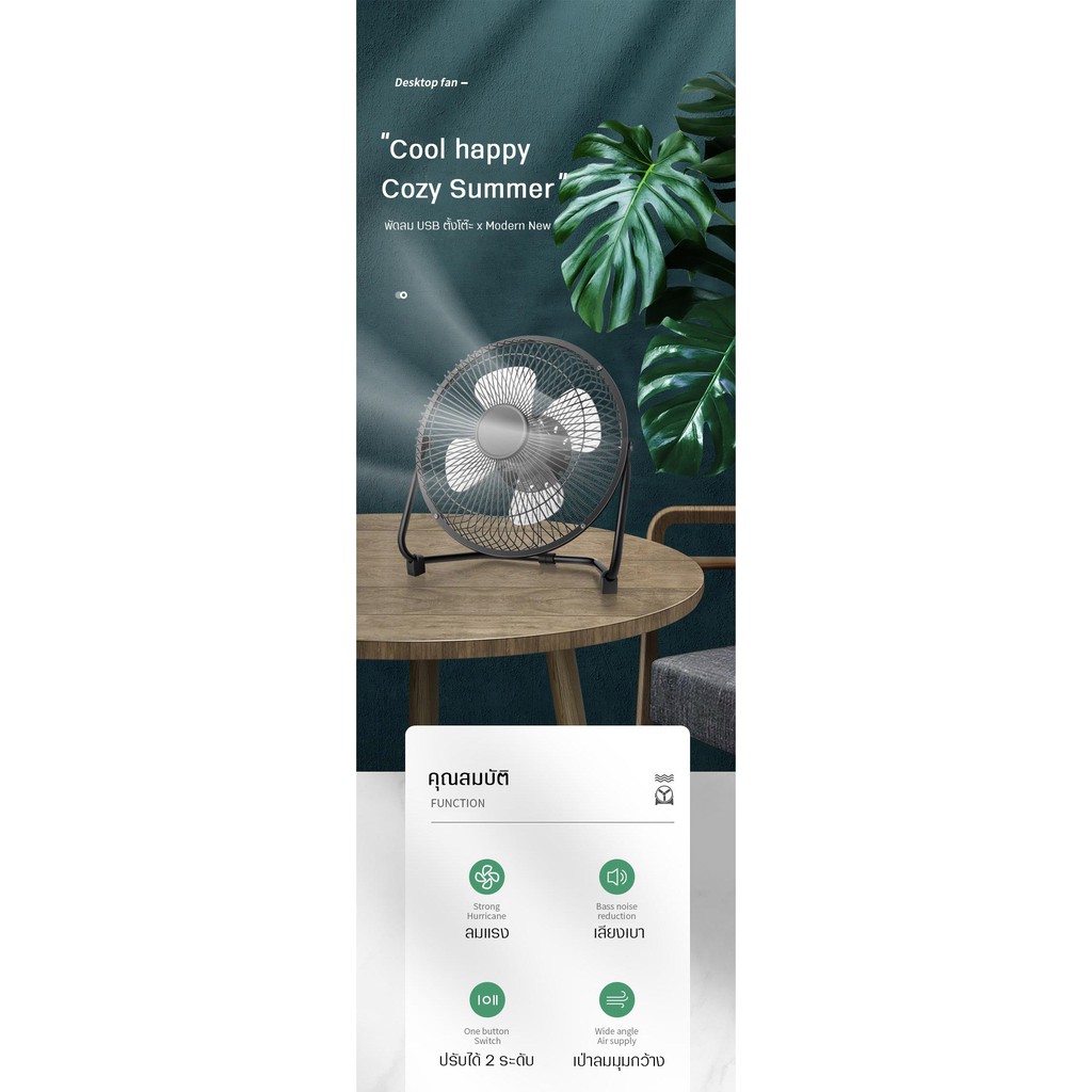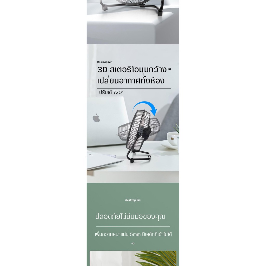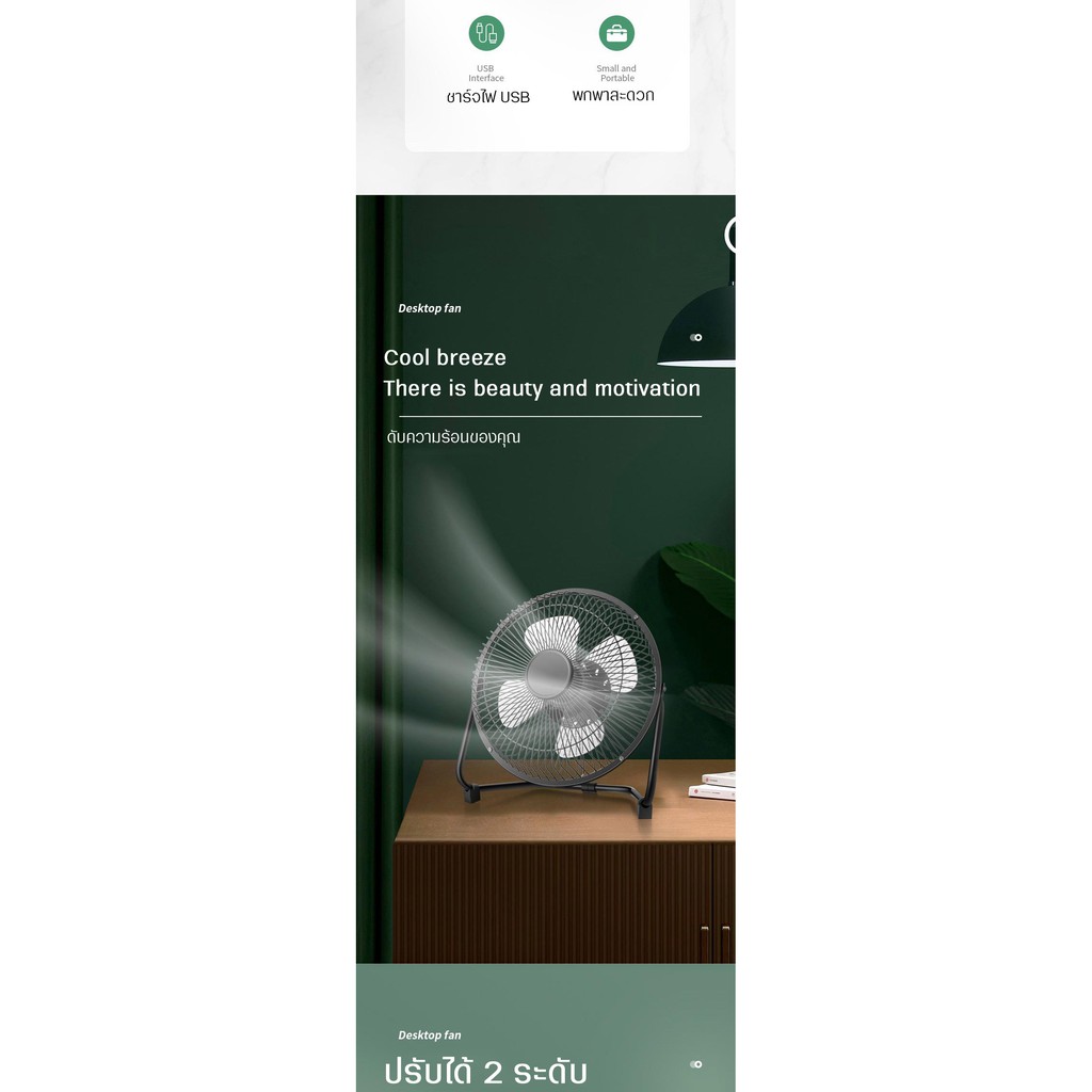 พัดลมตั้งโต๊ะ USB 7นิ้ว แบบเสียบไฟ ลมแรงเสียงเบา พัดลมระบายความร้อน ขนาดเล็ก พกพาสะดวก ใช้ในรถได้ ใช้กับพาวเวอร์ได้