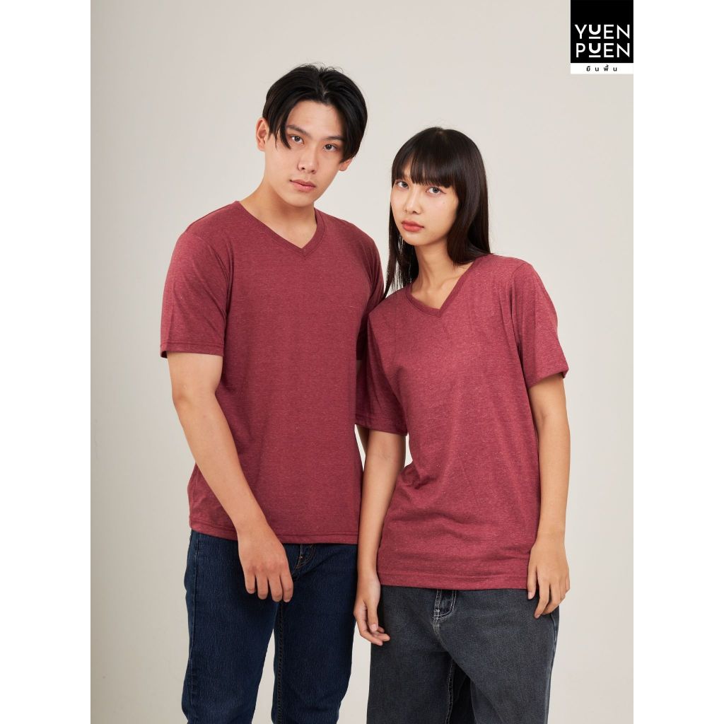 YuenPuen เสื้อยืดคอวี สีแดงอ่อน ยืนพื้น ไม่ยืด ไม่ย้วย ไม่ต้องรีด สีพื้น เนื้อผ้านุ่มใส่สบาย