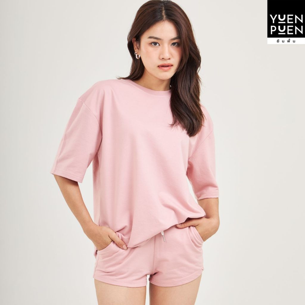 YuenPuen เสื้อยืด Oversize สีพิงค์ ยืนพื้น ไม่ยืด ไม่ย้วย เสื้อสีพื้น เสื้อโอเวอร์ไซส์ ผ้านุ่ม