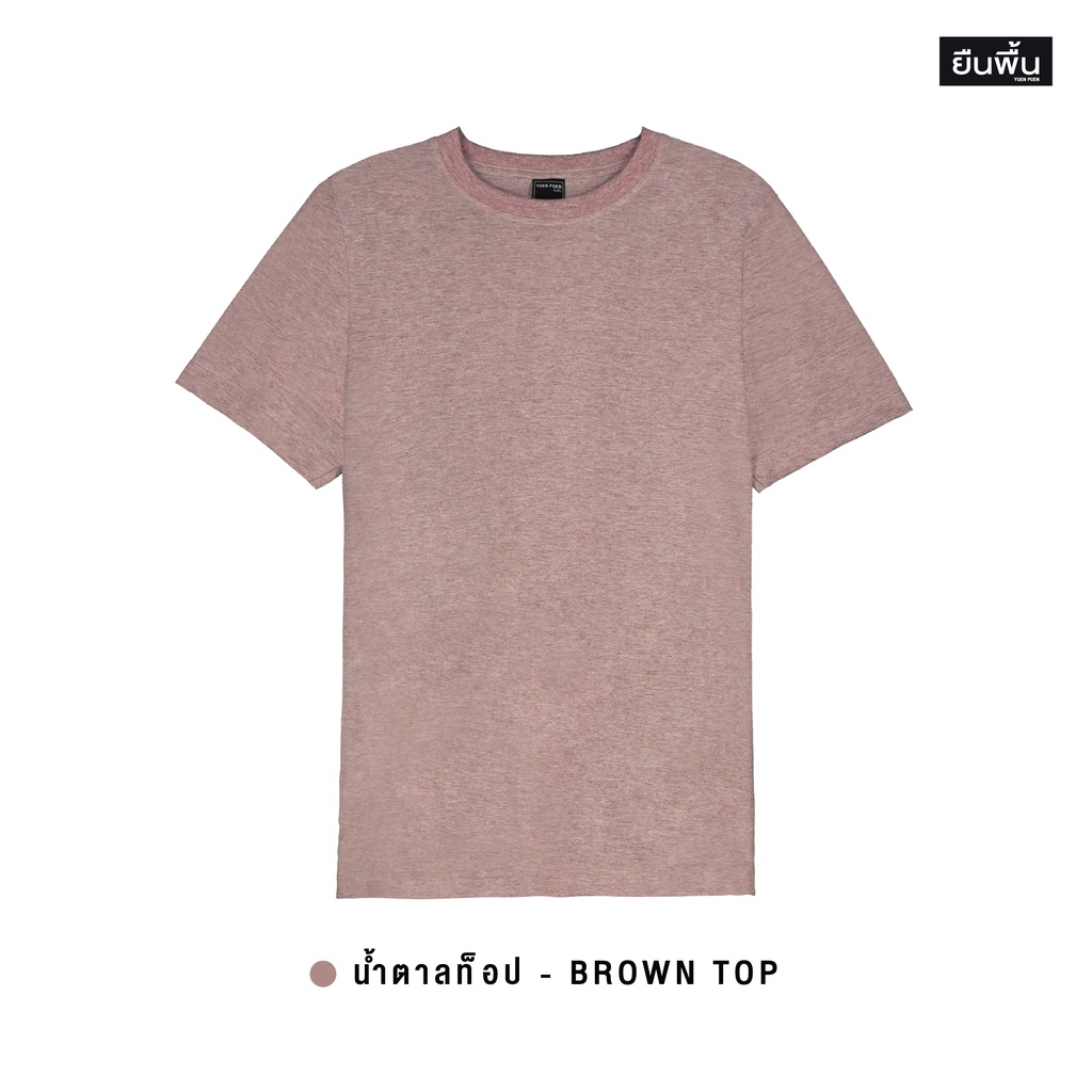 YuenPuen เสื้อยืดคอกลม สีน้ำตาลท็อป ยืนพื้น ไม่ยืด ไม่ย้วย ไม่ต้องรีด สีพื้น เนื้อผ้านุ่มใส่สบาย